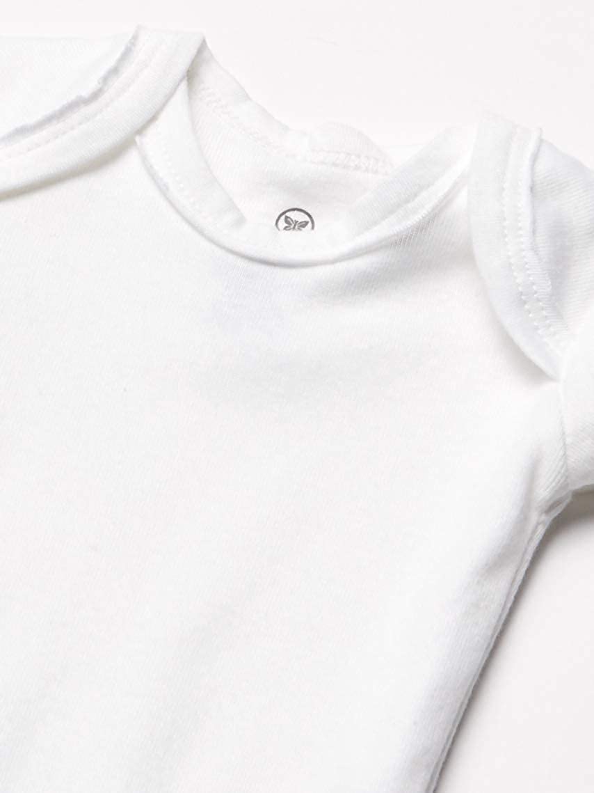 Short sleeve bodysuits are the baby essentials you can't do without. Available in a 5-pack, our comfy bodysuit has an envelope neck that expands and nickel-free snaps at the bottom to make it easy to get on and off. Made from 100% organic cotton, this short-sleeve bodysuit is just right to wear on its own or layered for super-cute styles. Perfect baby clothes to use as blanks for a baby shower game or just to have in bulk so there is always a clean bodysuit on-hand when you need it. Honest makes organic cotton baby clothes for girls, boys and the little one that hasn't yet been revealed.