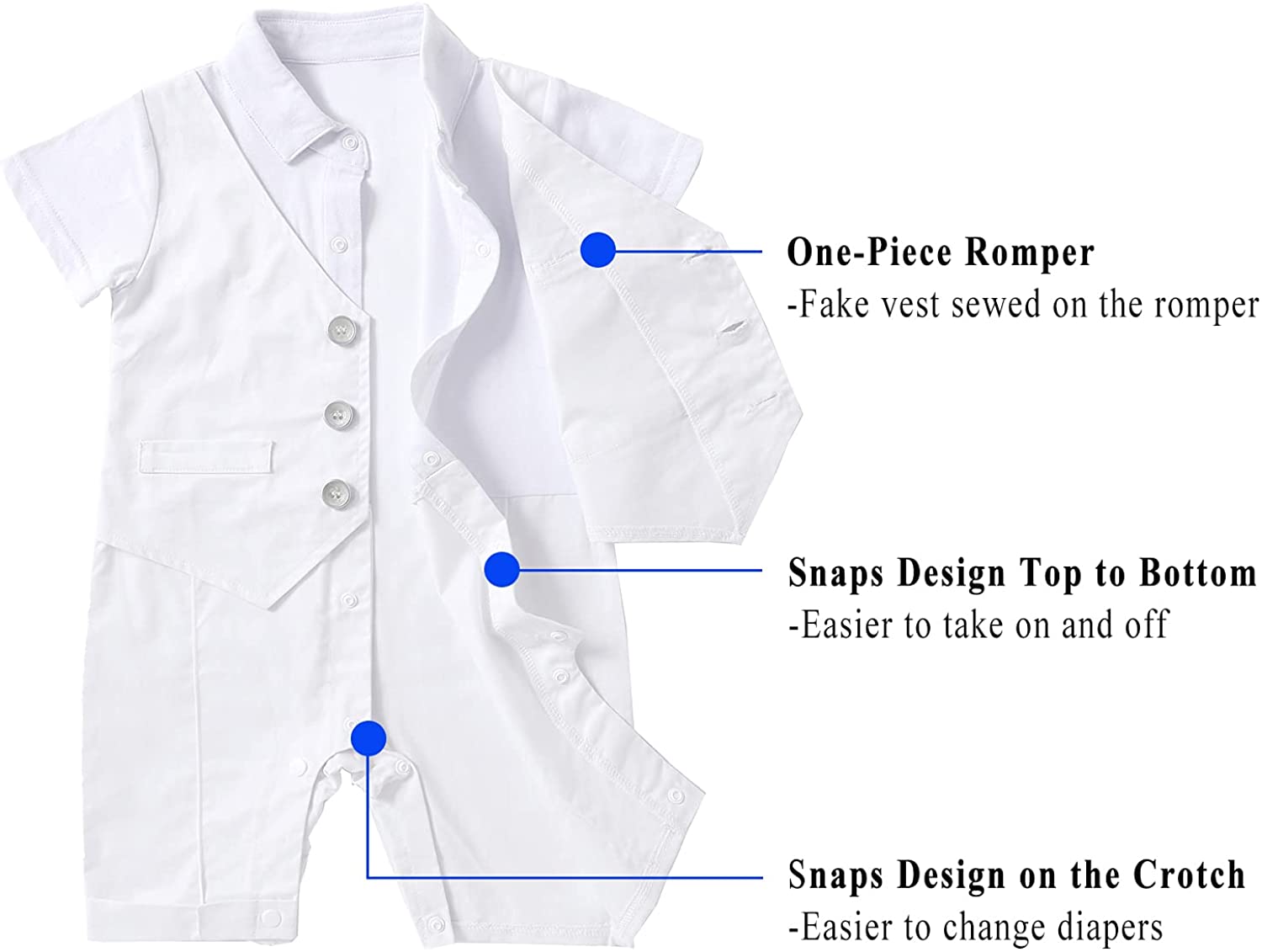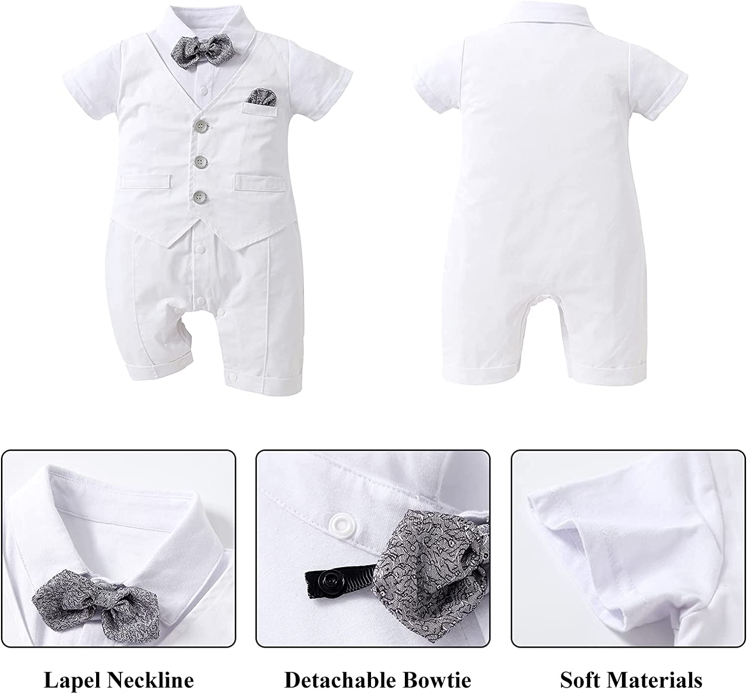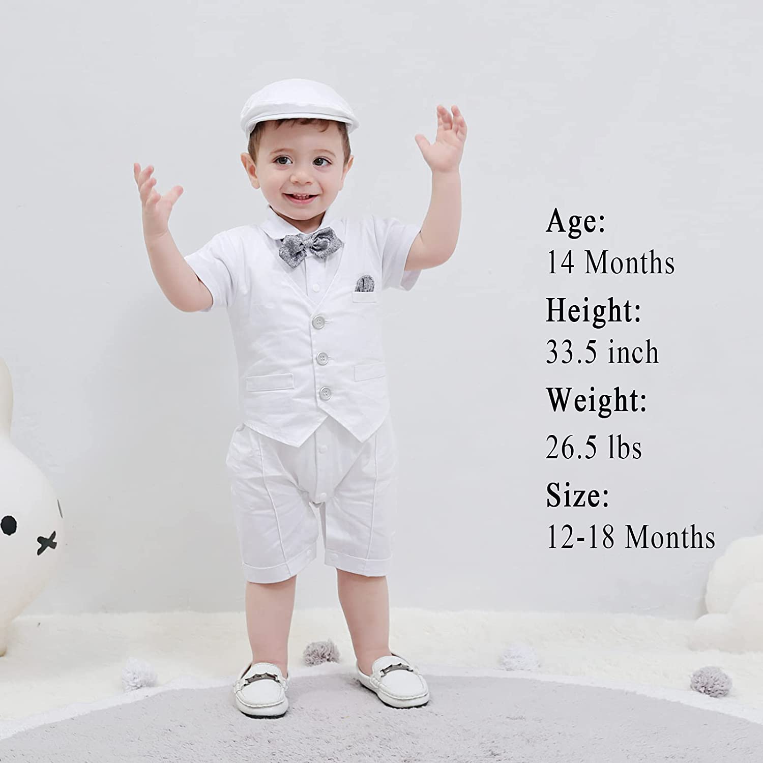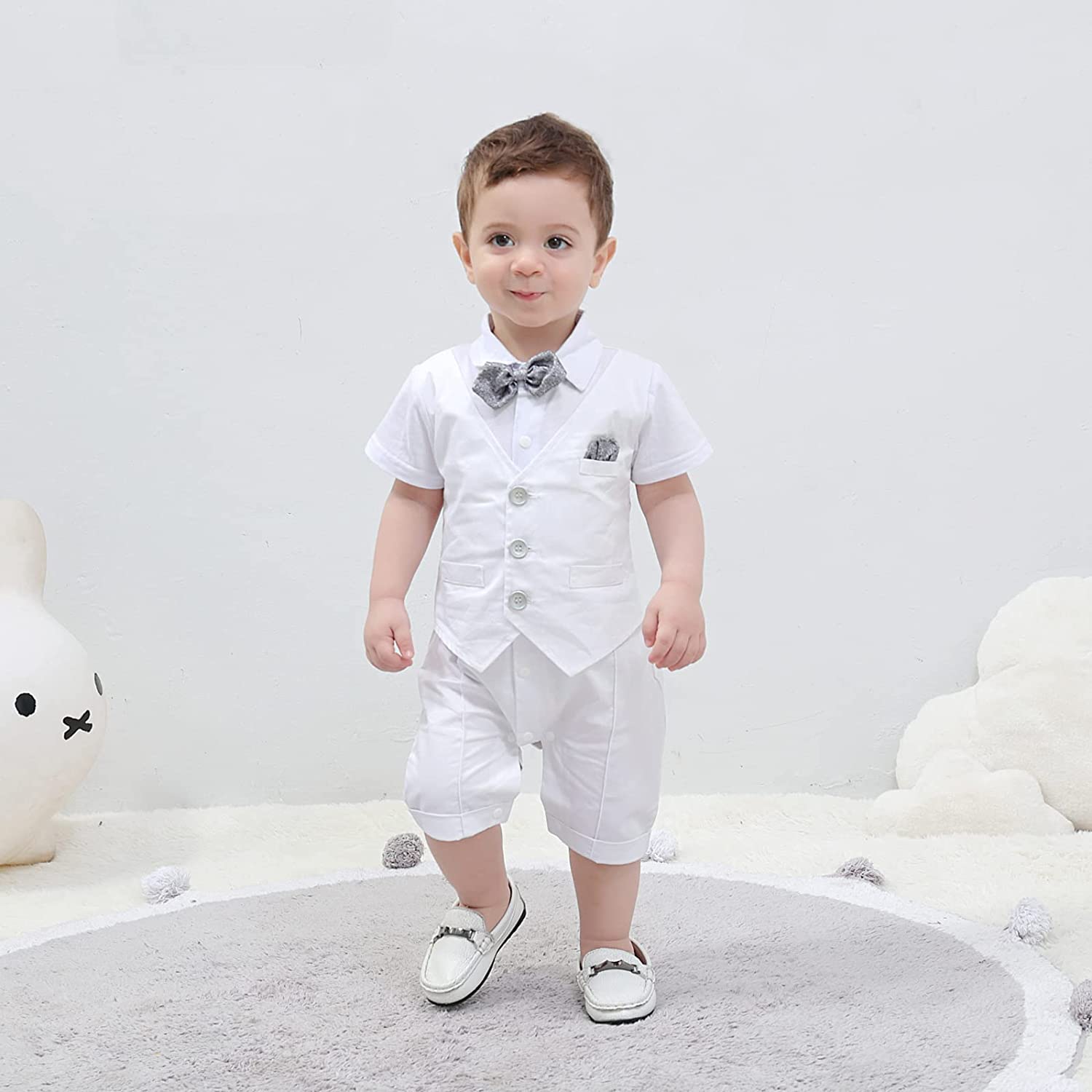 HOSUKKO Baby Boy Suit, One-Piece Romper & Vest & Beret & Bowtie (0-24 Months)