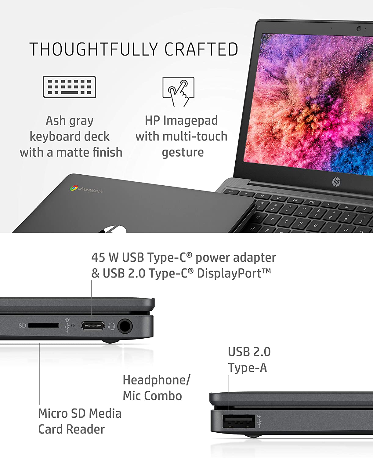 HP Chromebook 11-inch Laptop - MediaTek - MT8183 - 4 GB RAM - 32 GB eMMC Storage - 11.6-inch HD Display - with Chrome OS™ - (11a-na0010nr, 2020 model)