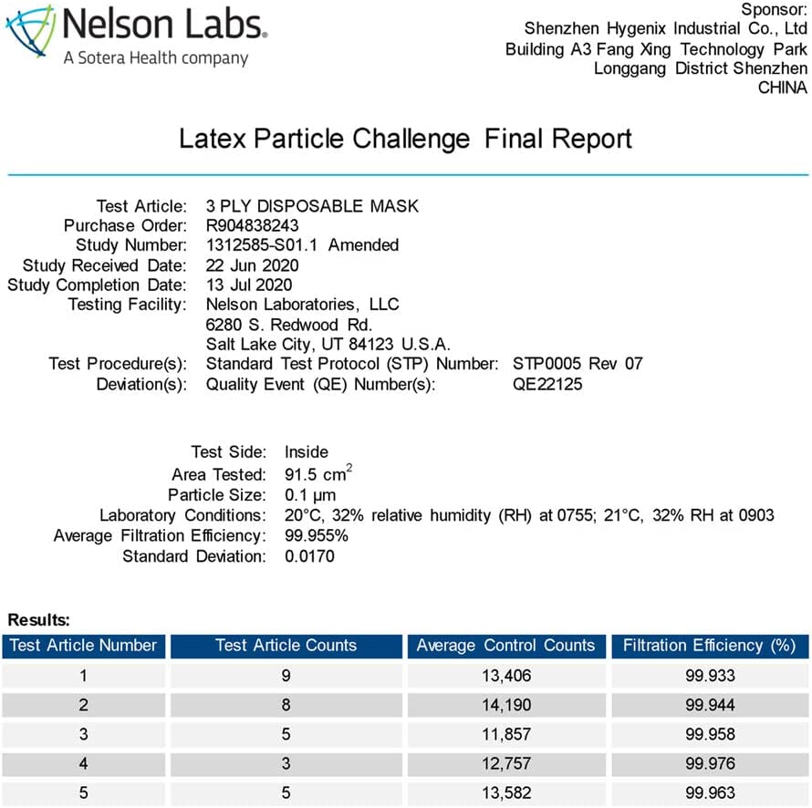 Hygenix 3ply Disposable Face Masks PFE 99% Filter Quality "Tested by a US lab" (Pack of 50 Pcs)