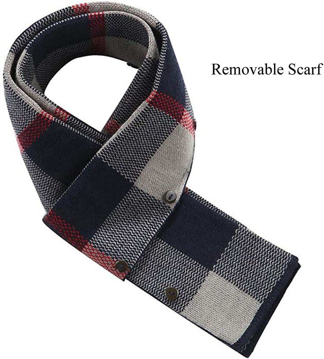 INVACHI Men's Slim Fit Winter Warm Short Woolen Coat Business Jacket with Free Detachable Soft Touch Wool Scarf