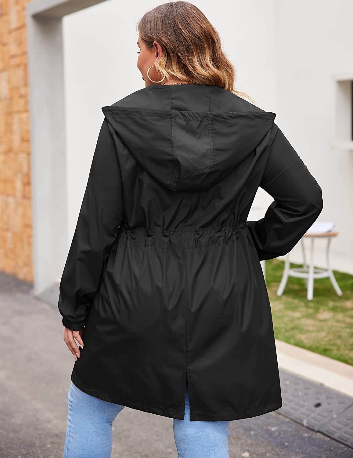IN'VOLAND Women's Rain Jacket Plus Size Long Raincoat Lightweight Hooded Windbreaker Waterproof Jackets with Pockets