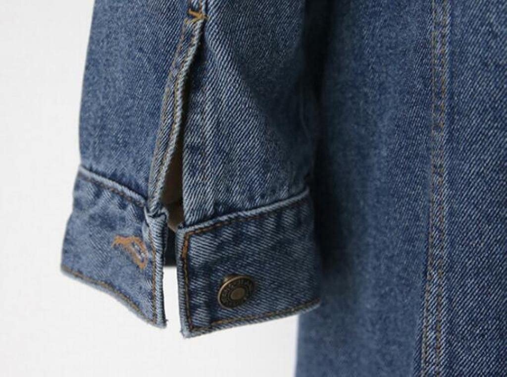 Jofemuho Womens Classic Long Jean Jacket Plus Size Loose Long Sleeve Button Down Denim Jacket Trench Coat