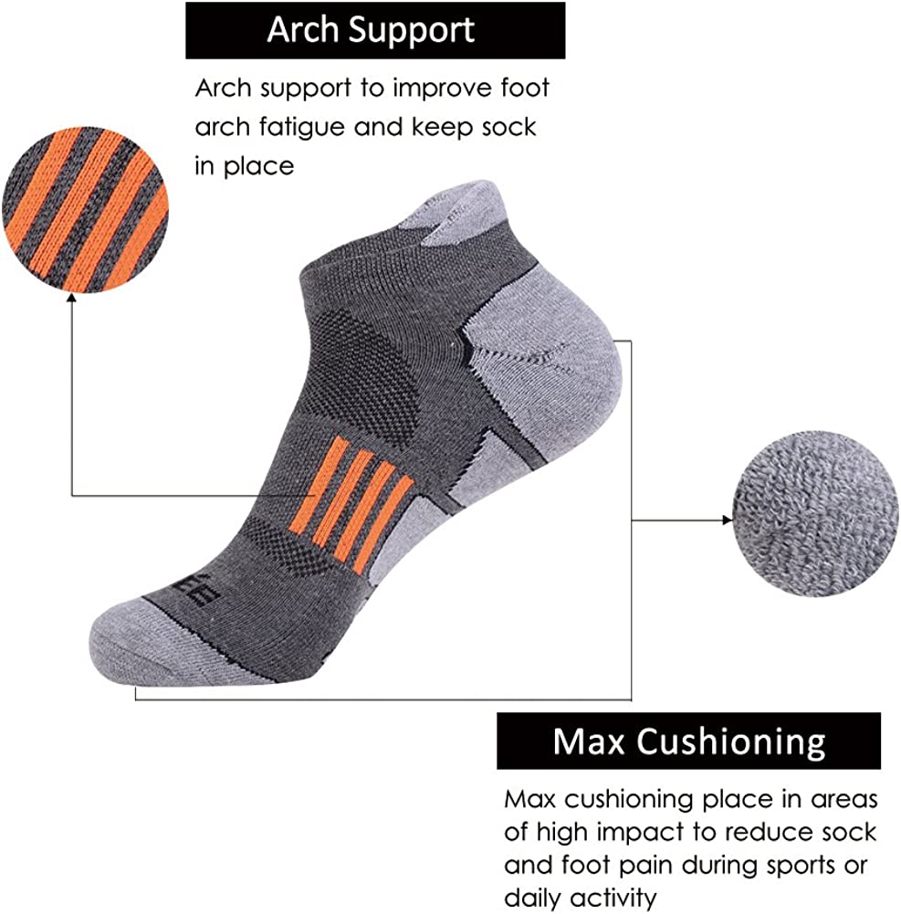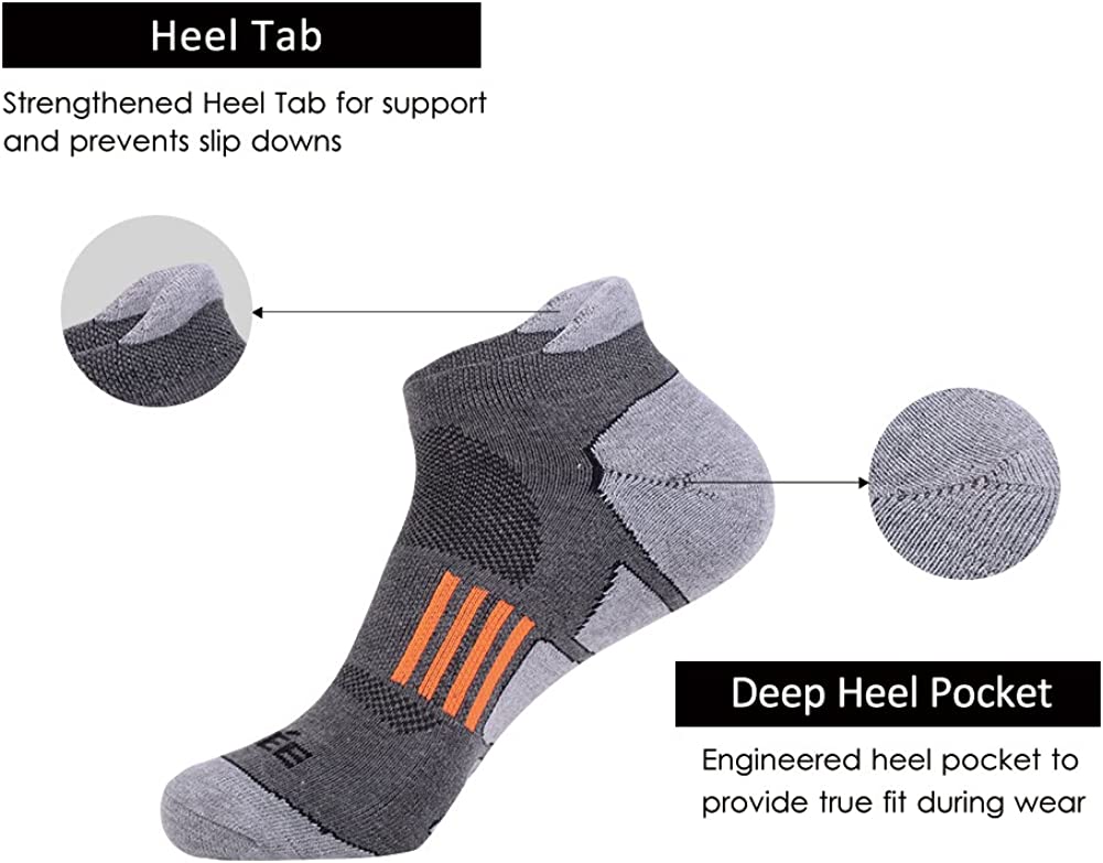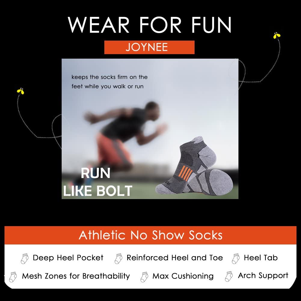 JOYNÉE Men's 6 Pack Athletic No Show Performance Comfort Cushioned Low Cut Running Tab Socks