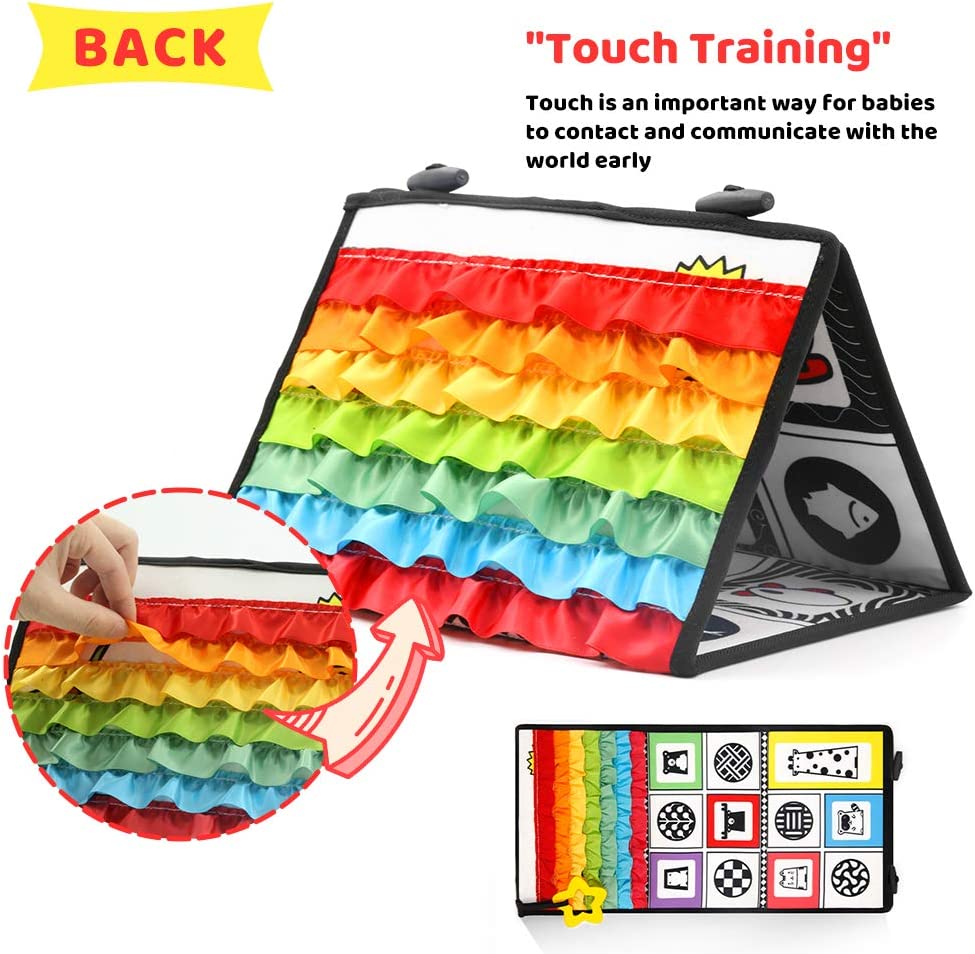 KUANGO Tummy Time Mirror Toys for Babies, High Contrast Activity Montessori Newborn Toys, Black and White Baby Toys 0 3 6 12 Sensory Infant Toys 0-3 Months