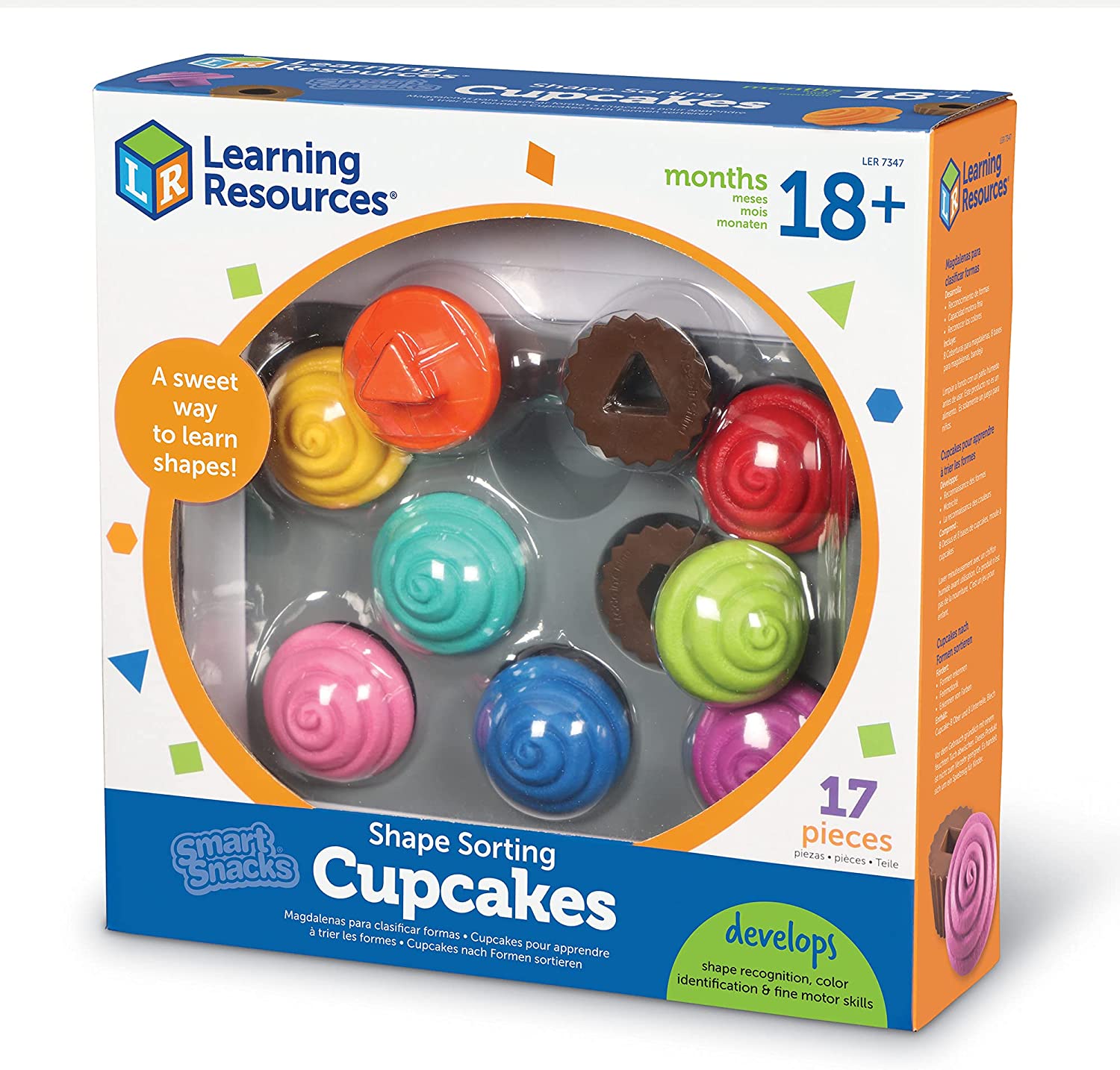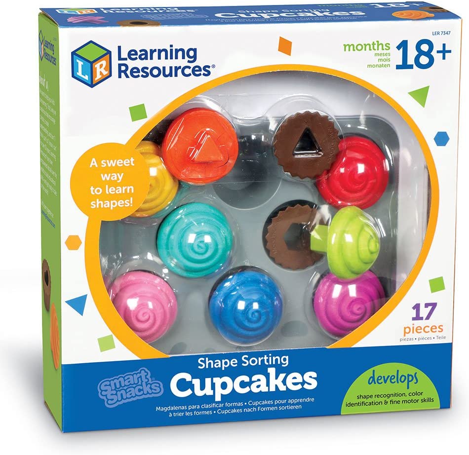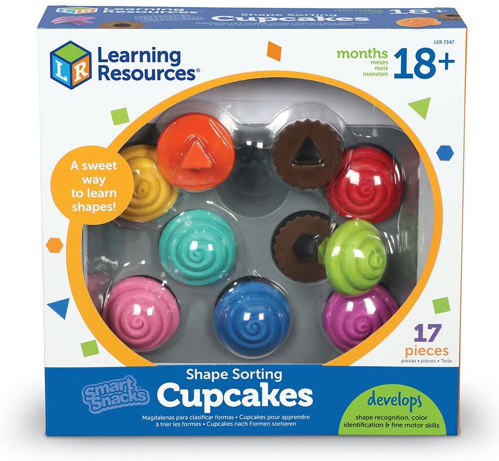 Encourage shape and color identification and build fine motor skills with these colorful and delicious looking cupcakes. 8 two-part cupcakes pull apart to reveal a circle, square, triangle, rectangle, oval, hexagon, star and heart. Match the shapes to put them back together. Then match the shape to the pan bottom.