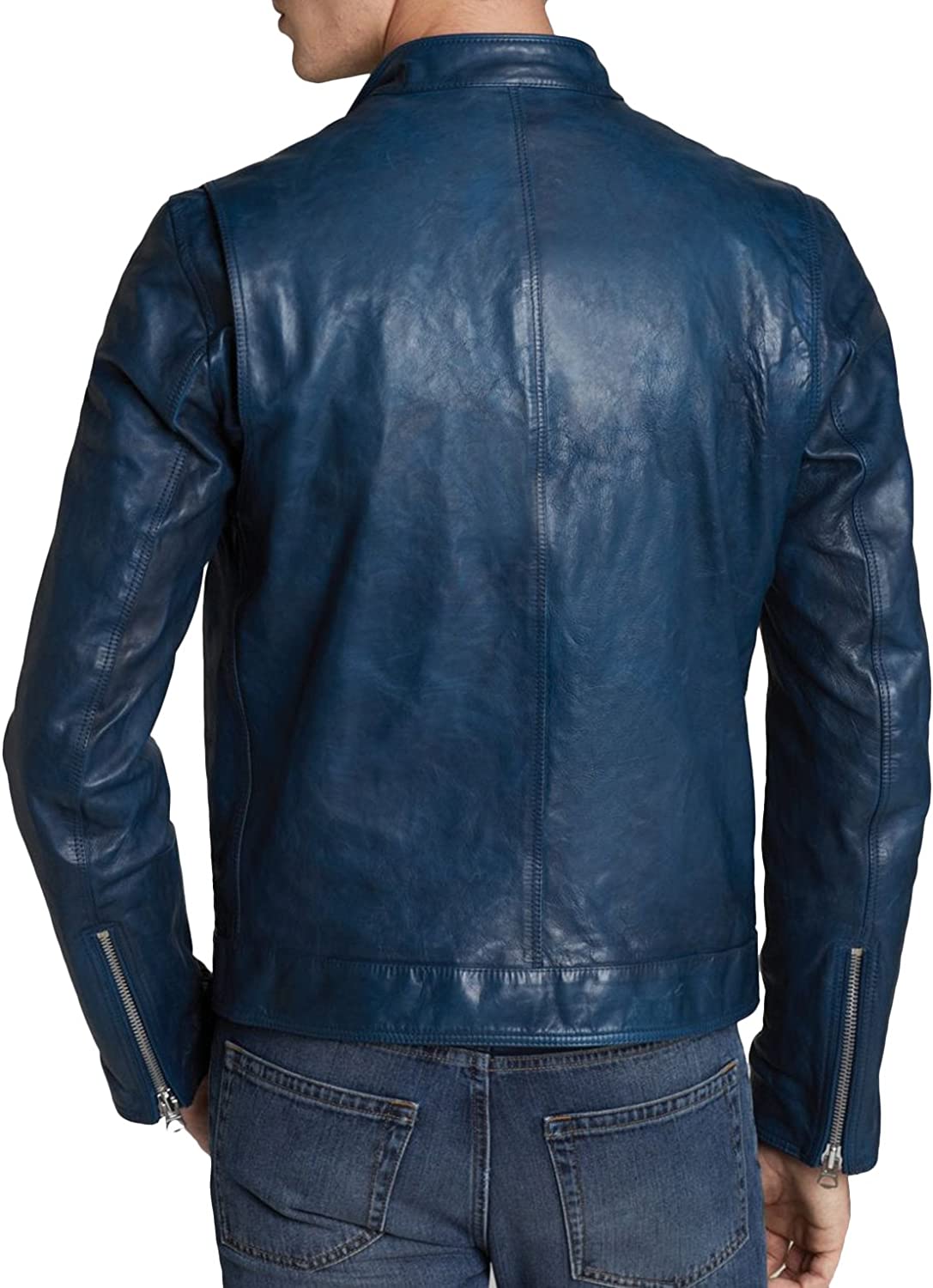 Leather Jacket Men Blue Genuine Lambskin Made to Measure Size S M L XL XXL Cafe Racer