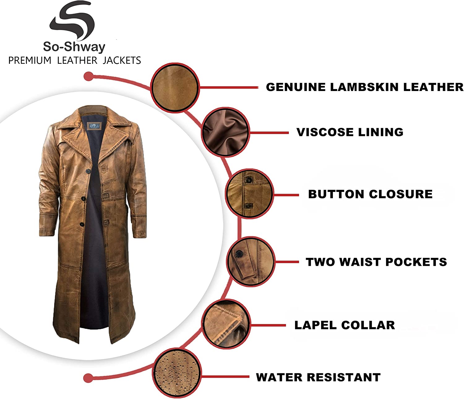 Leather Trench Coat Mens Full Length - Leather Duster Coat For Men
