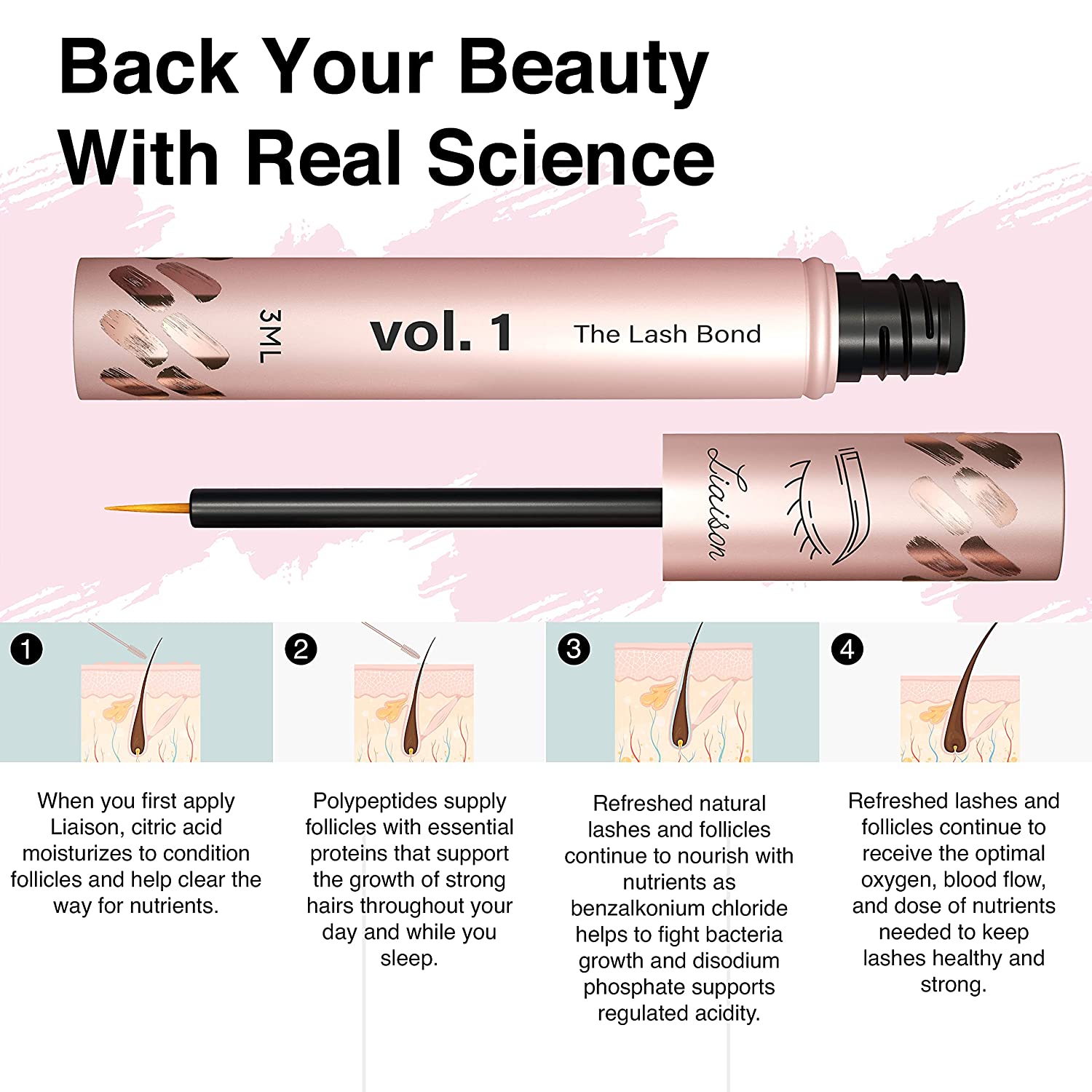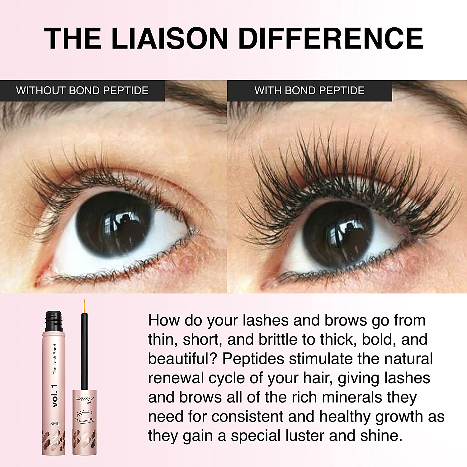 Liaison Lash Bond Eyelash Growth Serum - Natural Peptide Lash Boost & Enhancer for Longer, Fuller, & Thicker Lashes - Vegan, Cruelty Free, Paraben Free, Talc Free & Irritation Free Formula