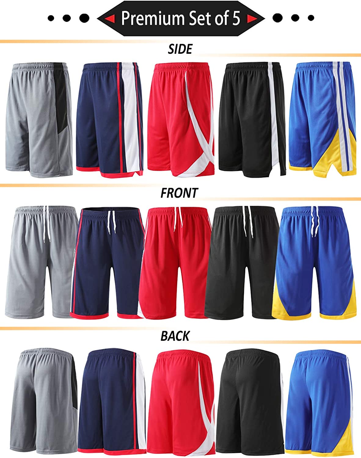 Liberty Imports Pack of 5 Men's Athletic Basketball Shorts with Pockets Mesh Quick Dry Activewear