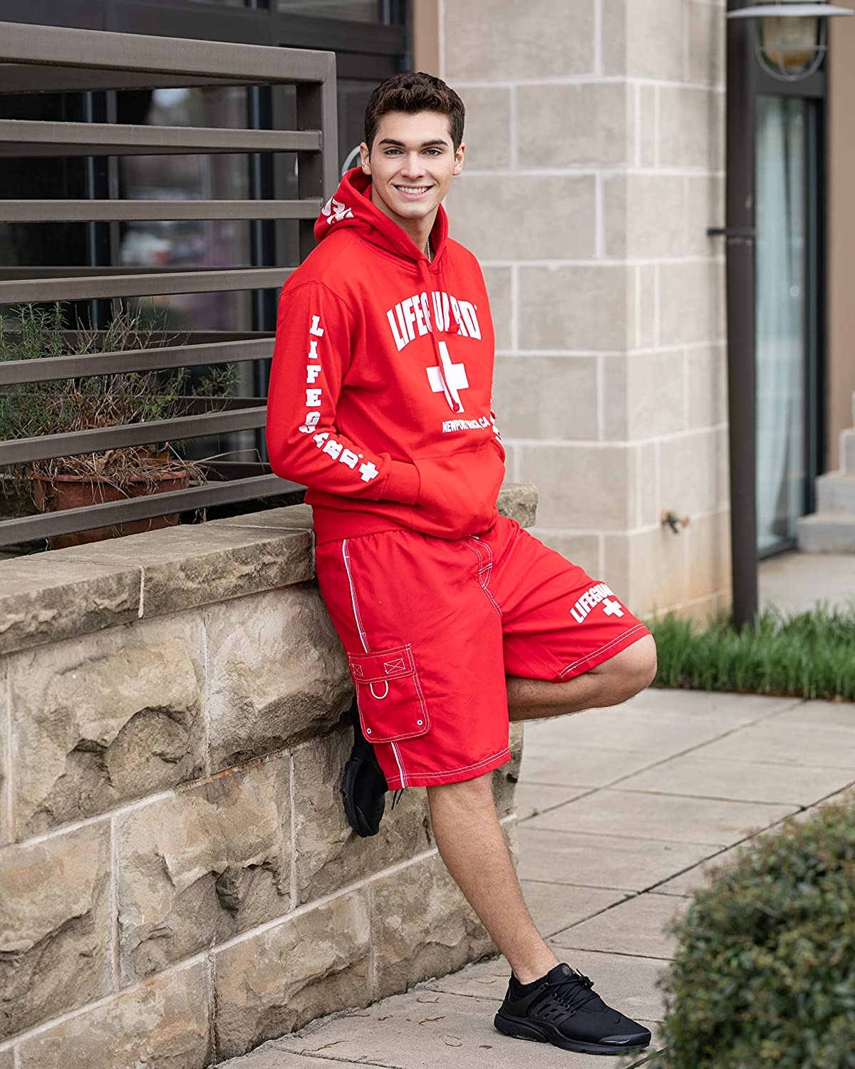 LIFEGUARD Officially Licensed Red Men's Board Shorts Swim Trunks with Side Pocket, Men and Boys, Great for Beach & Pool