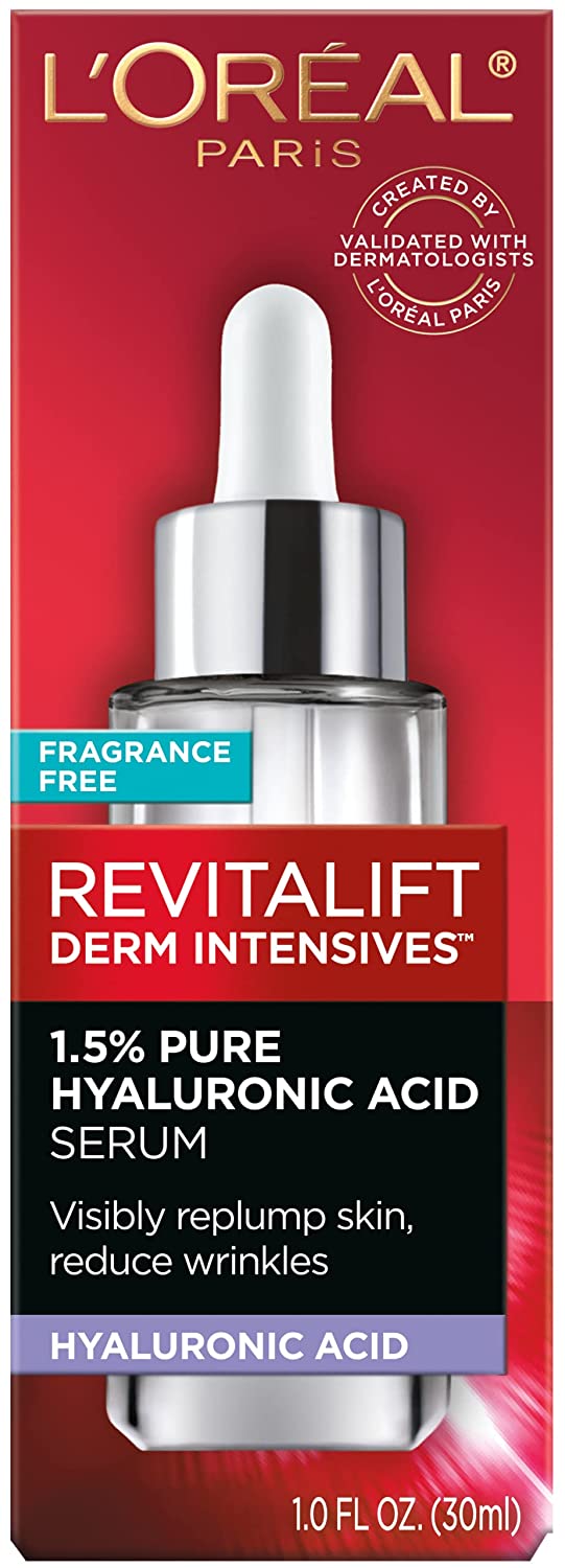 Revitalift Derm Intensives 1.5% Pure Hyaluronic Acid Serum with Vitamin C is a derm-validated, anti-aging serum to intensely hydrate, replump, reduce wrinkles and moisturize for dewy-looking skin.
