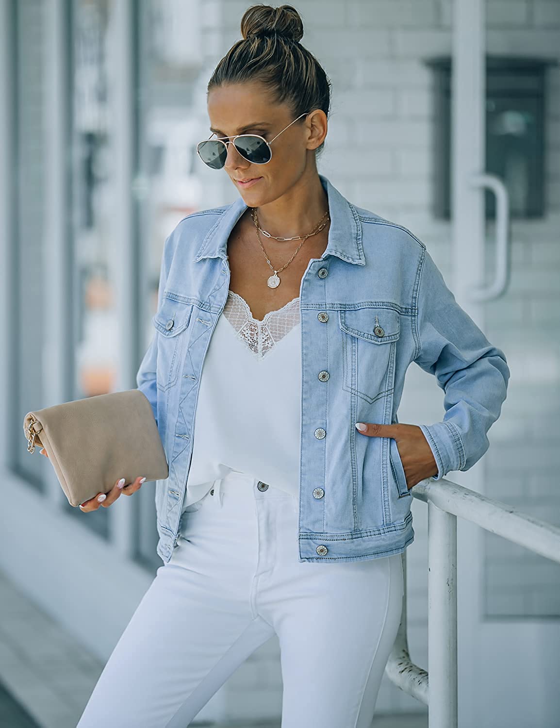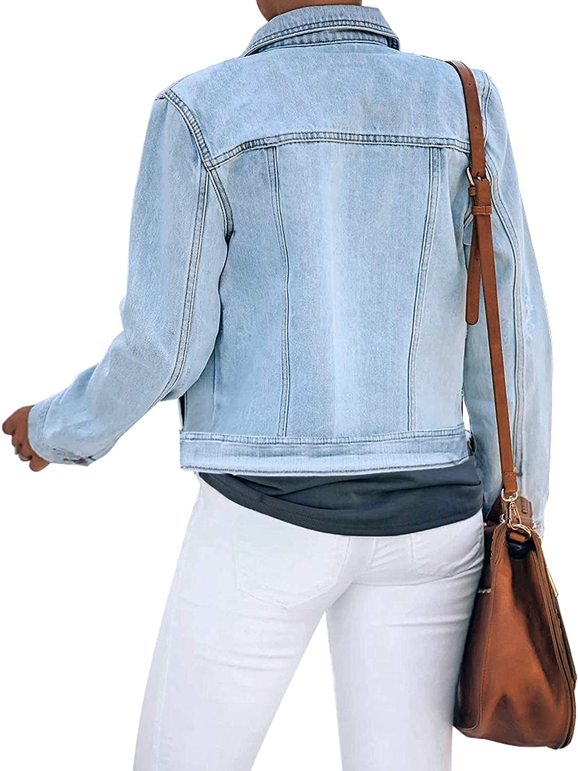 luvamia Women's Basic Button Down Stretch Fitted Long Sleeves Denim Jean Jacket