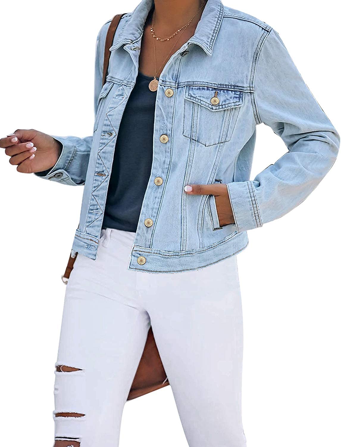 luvamia Women's Basic Button Down Stretch Fitted Long Sleeves Denim Jean Jacket