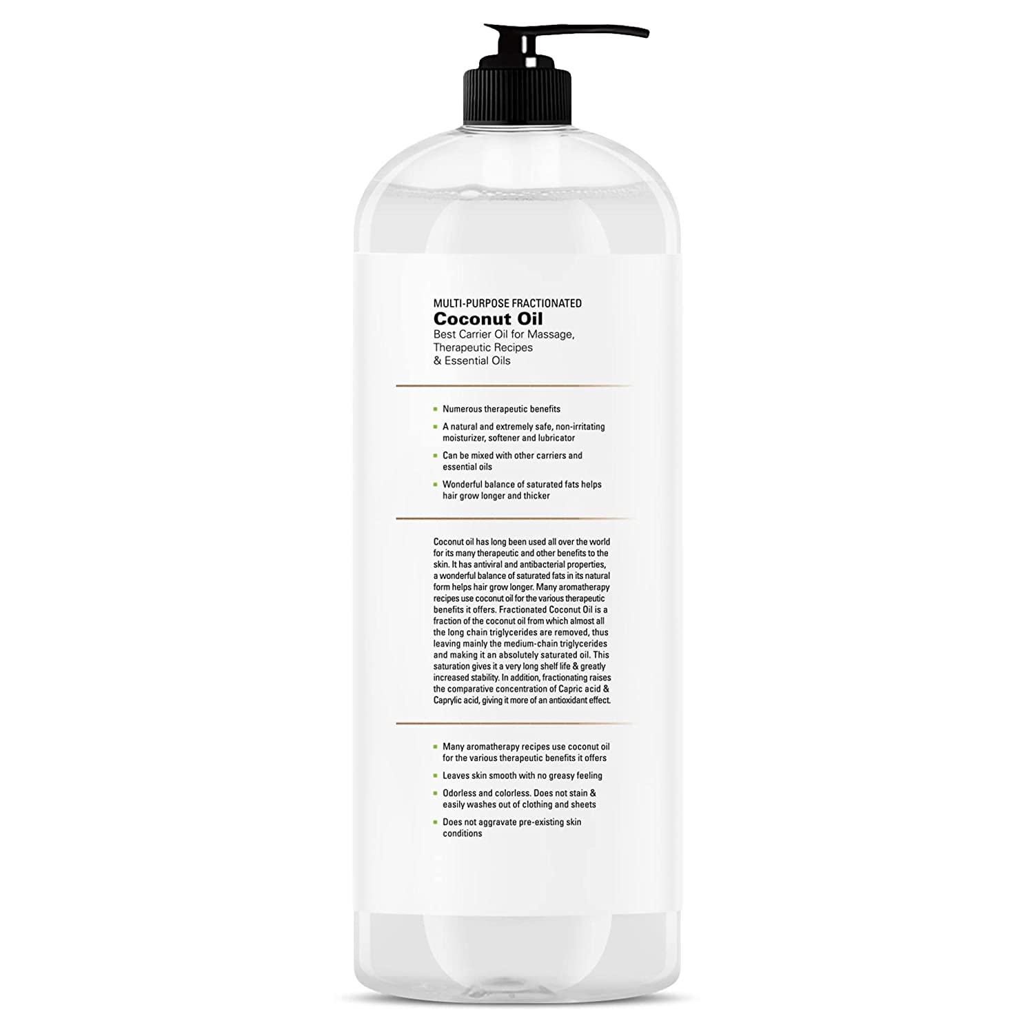 MAJESTIC PURE Fractionated Coconut Oil - Relaxing Massage Oil, Liquid Carrier Oil for Diluting Essential Oils - Skin, Lip, Body & Hair Oil Moisturizer & Softener - 16 fl oz