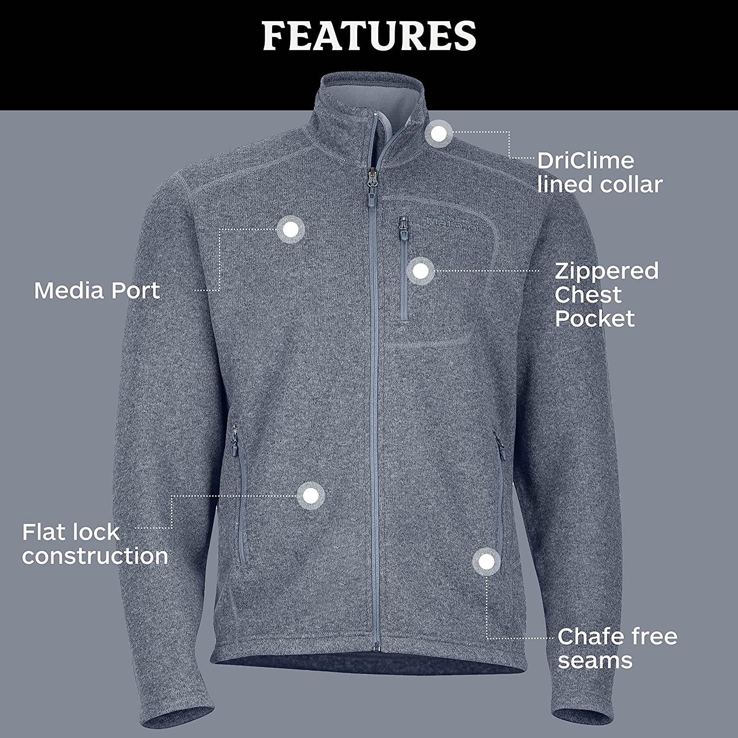 Marmot Men's Drop Line, Lightweight 100-Weight Sweater Fleece Jacket