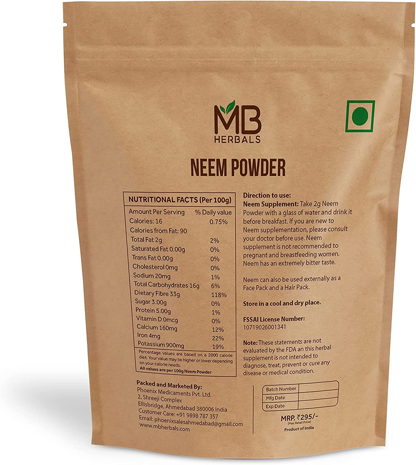 MB Herbals Pure Neem Powder 8 oz | 227 Gram / 0.5 LB Pure Wild-Crafted Neem Leaf Powder | Very Bitter Neem Supplement for Skin Hair & Detox | Azadirachta Indica - Packaging May Vary