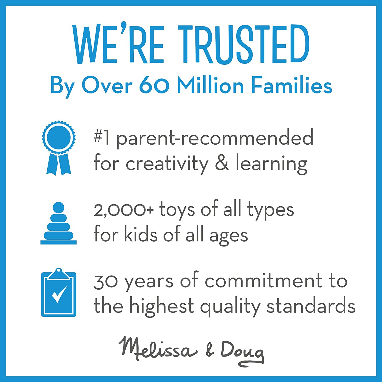 Since the company’s founding more than 25 years ago, Melissa & Doug has consistently delivered innovative products that inspire open-ended thinking, encourage kids to see new possibilities, and offer Countless Ways to Play. It’s part of a bigger vision to Take Back Childhood. Because by giving children a true childhood with the space and freedom to explore their world, we give them a path to realizing their full potential!