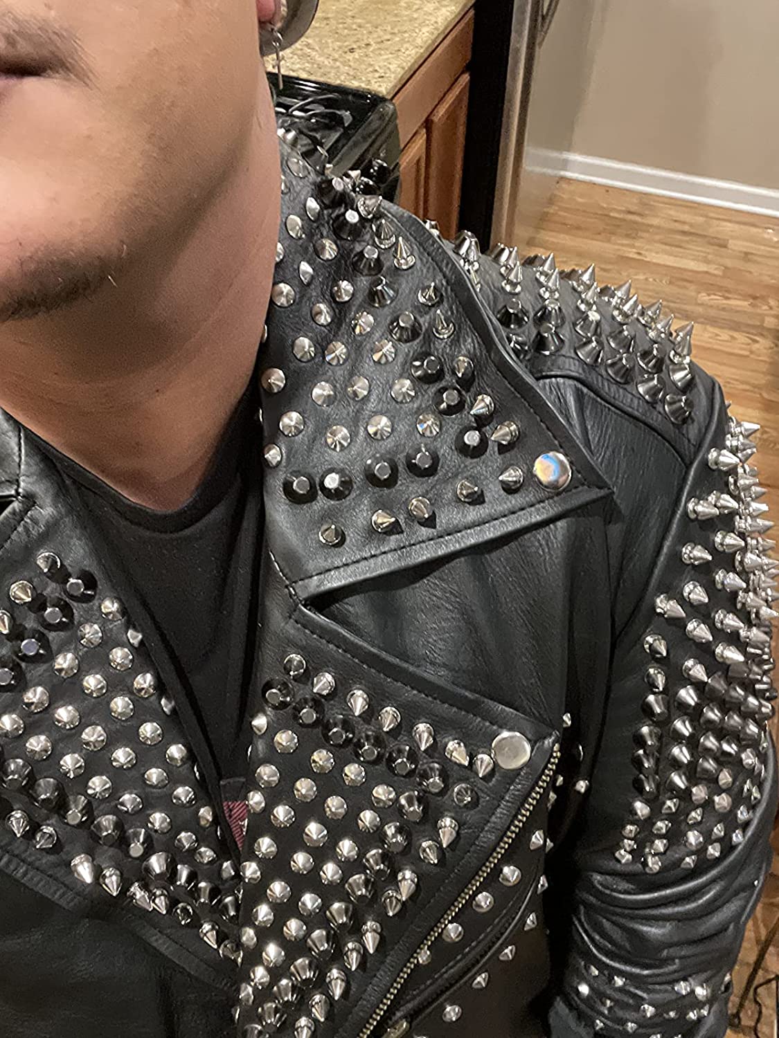 Mens Brando Motorbike Rock Punk Spike Studded Motorcycle Biker Leather Jacket