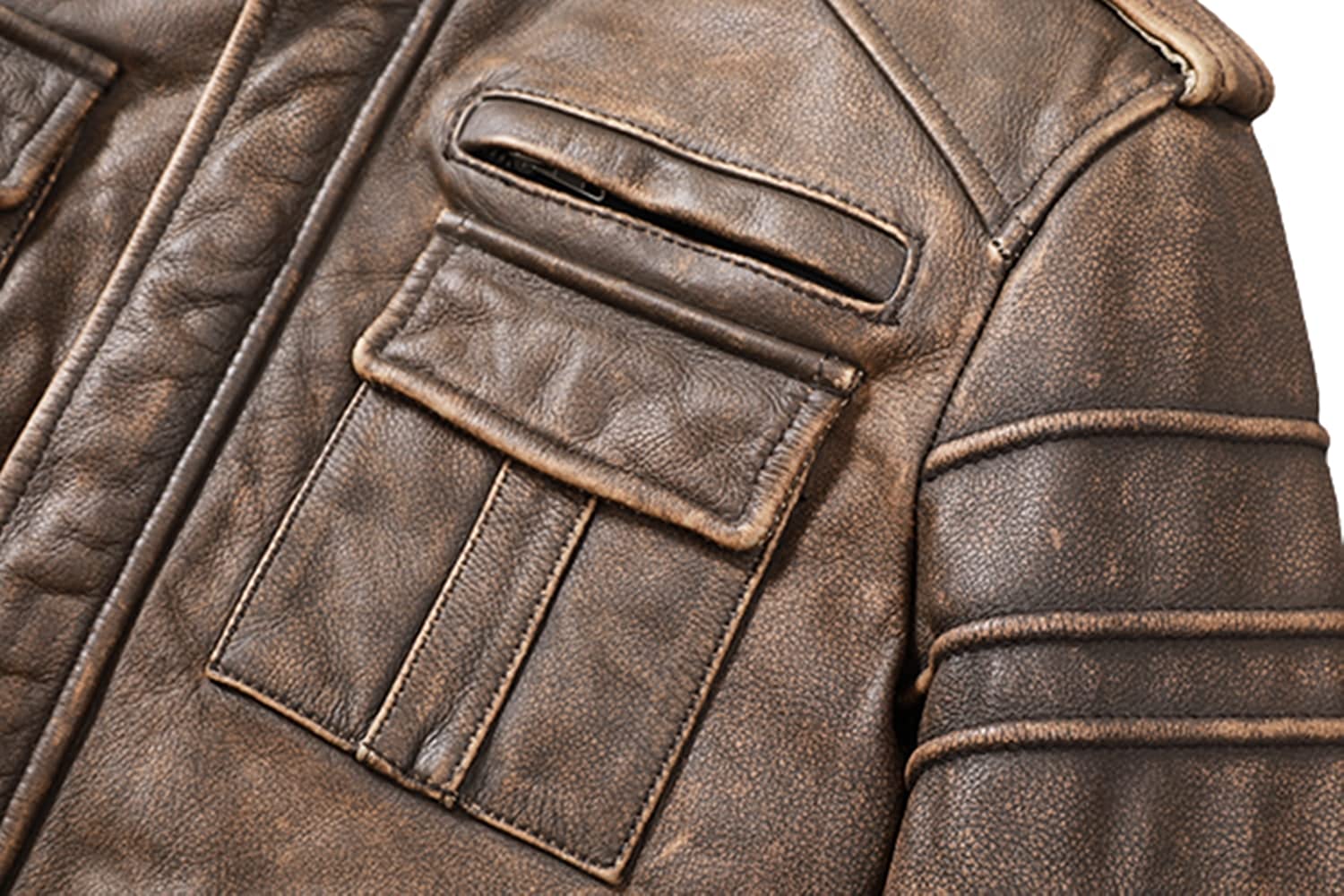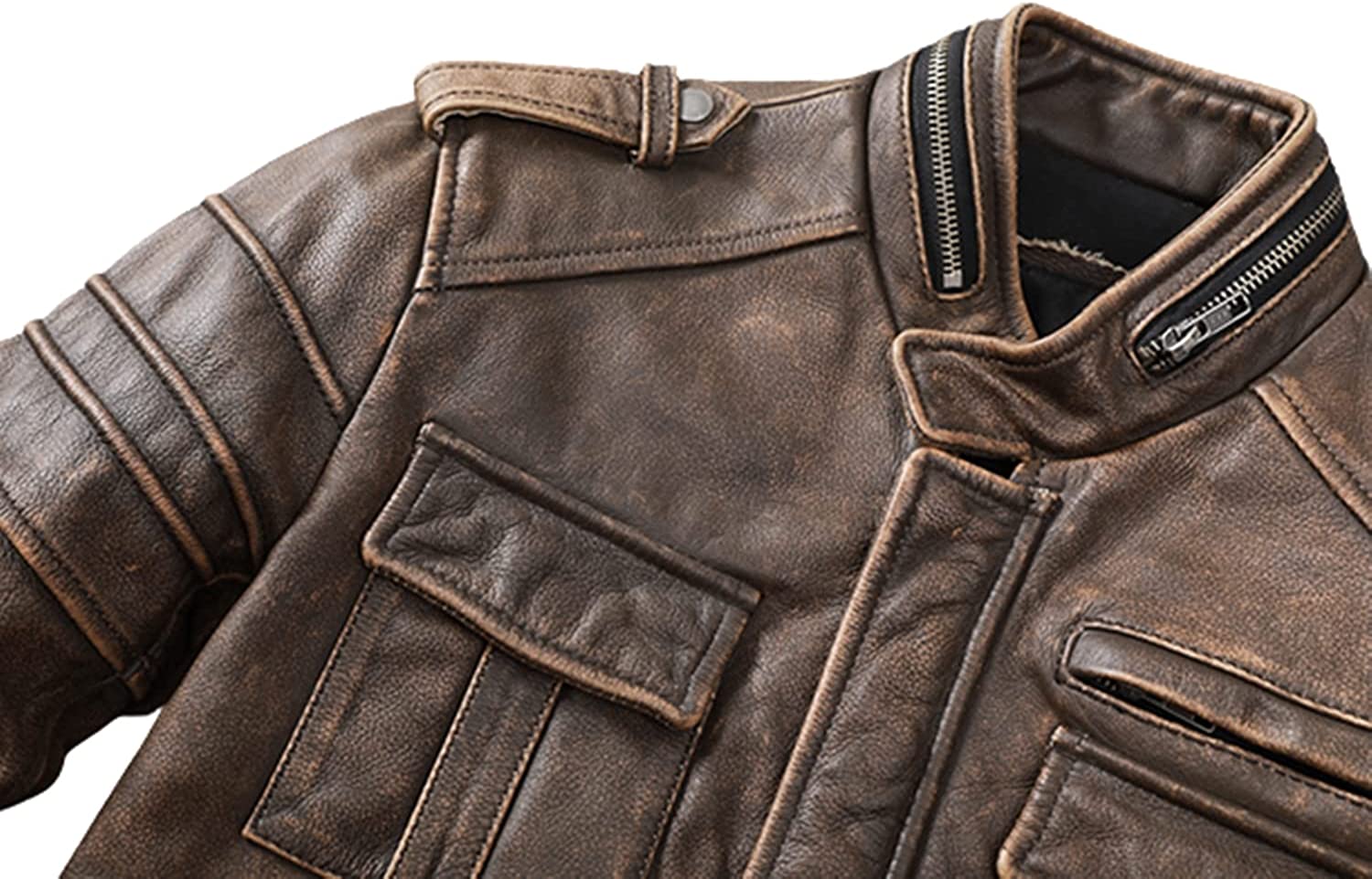 Mens Cafe Racer Jacket - Distressed Leather Jacket Men - Vintage Brown Leather Jacket - Genuine Lambskin Biker Jacket