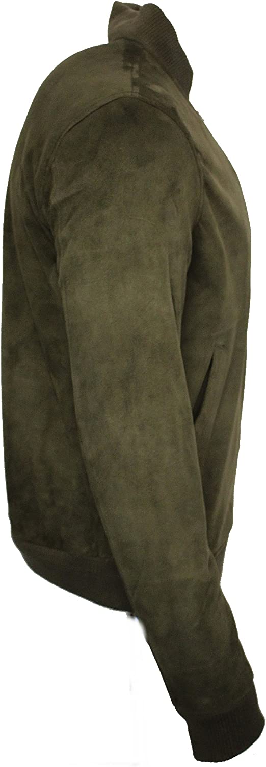 Mens Retro Khaki Goat Suede Leather Bomber Varsity Jacket