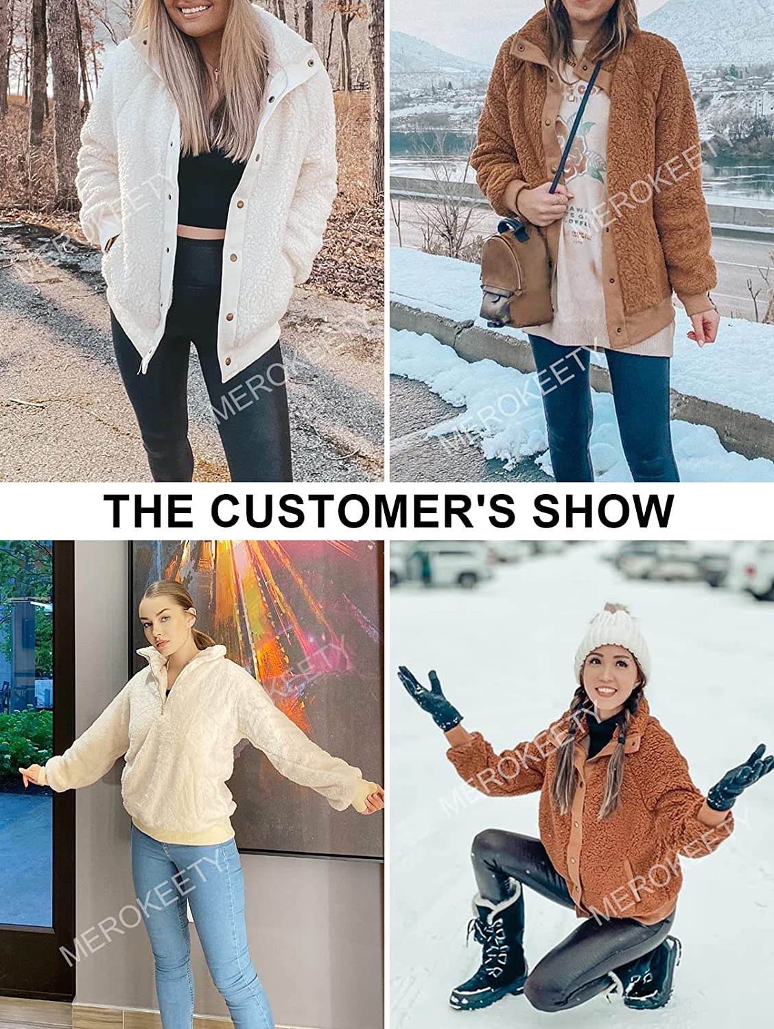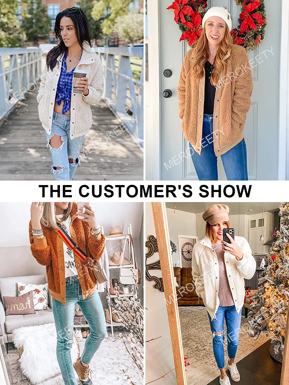 MEROKEETY Womens Winter Long Sleeve Button Sherpa Jacket Coat Pockets Warm Fleece