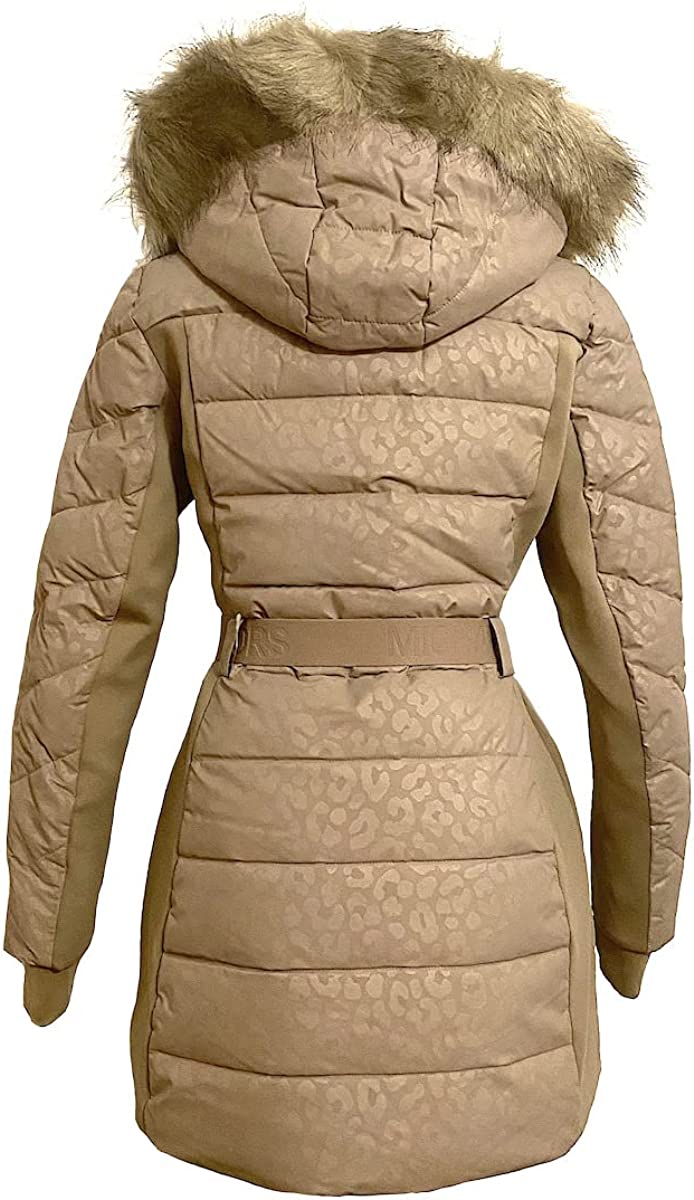 Michael Michael Kors Women's Logo Leopard Belted Hood Puffer Coat Black Animal