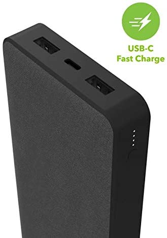 Charge multiple devices simultaneously whether you are at home, work or even out camping, with the mophie Powerstation XXL Power Bank. Featuring a 20,000 mAh large internal battery, it juices up your smartphones, tablets, and other USB-enabled devices, and holds up to 73+ hours of battery life in case of a power emergency. Charges 3 devices simultaneously via (1) fast charging 18W USB-C Power Delivery Port that ensures up to 50 percent charge in just 30 minutes, and (2) USB-A Ports. Its premium fabric finish prevents the outer surface from scuffs and scratches and the textured design around the perimeter of power station complements the fabric finish. This portable power bank includes a USB-A to USB-C power cord to charge itself, and other devices effectively. No on/off button or switch is required, as it automatically starts charging once your device is plugged in, making it super user-friendly. There is a built-in 4-light LED indicator that notifies you the battery levels of the power bank as well as your device.