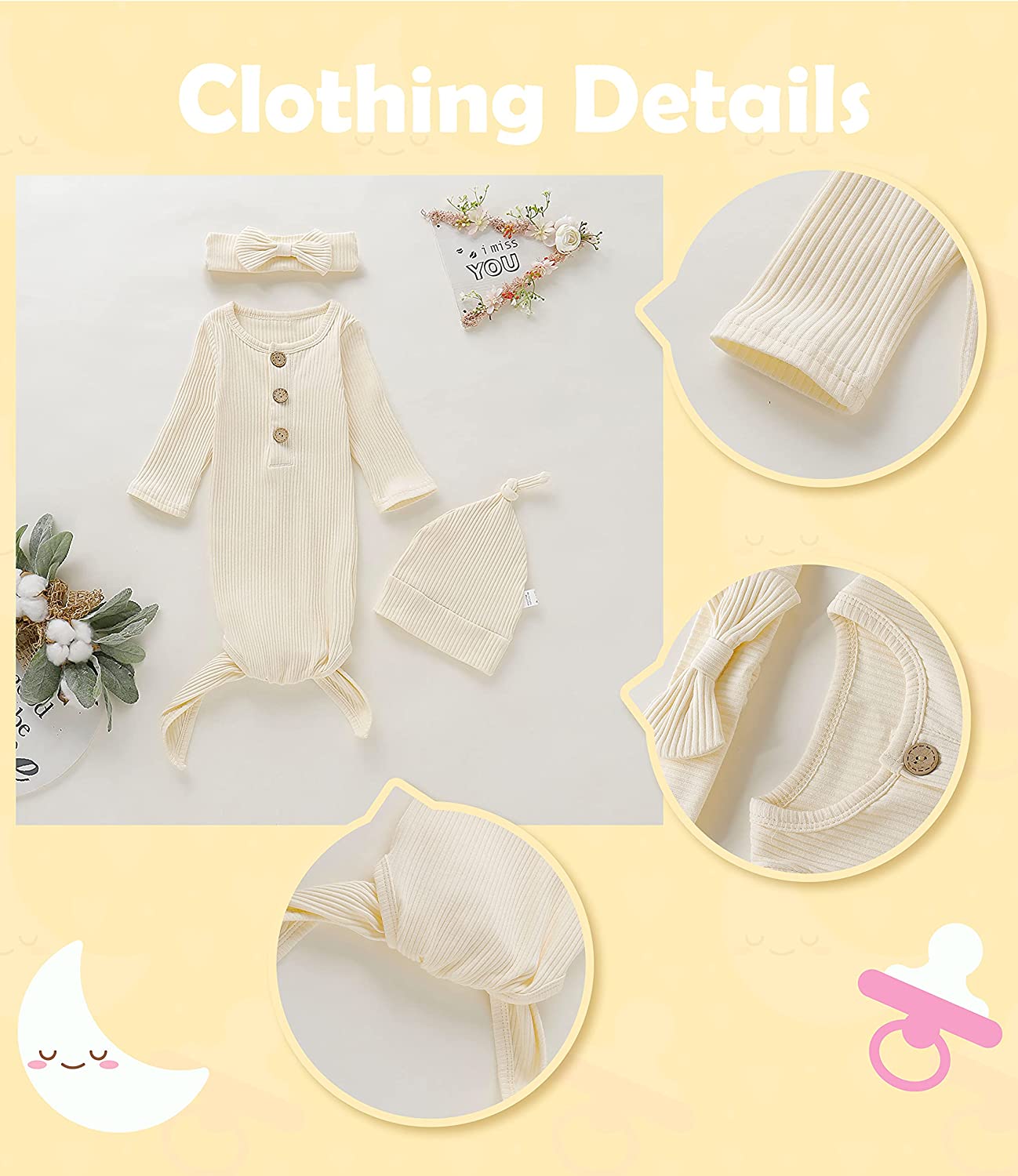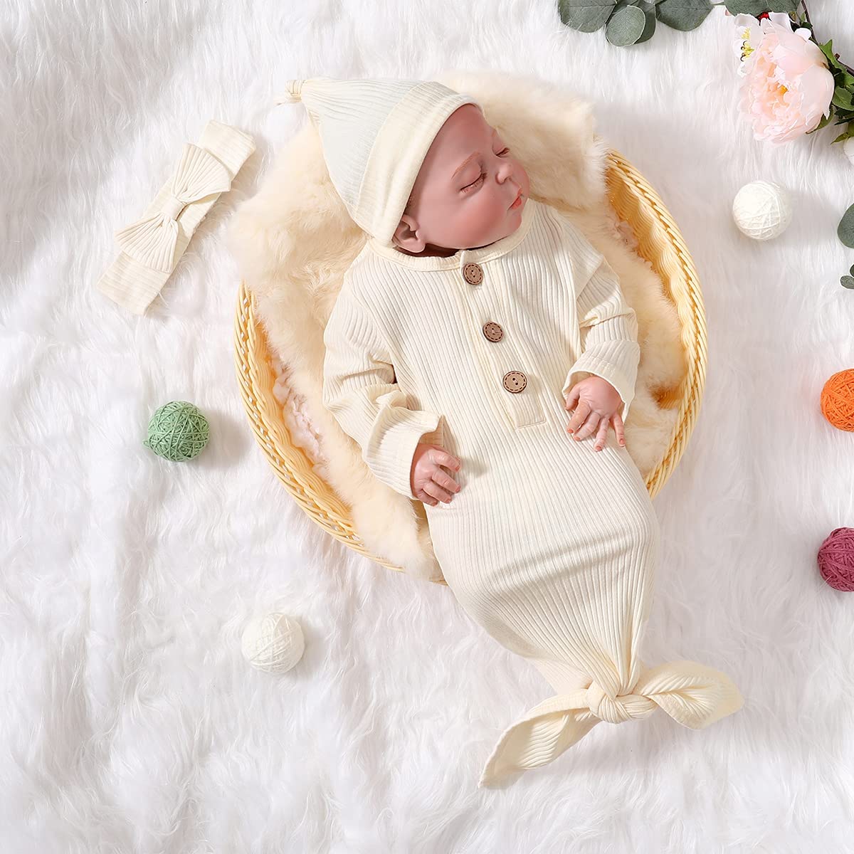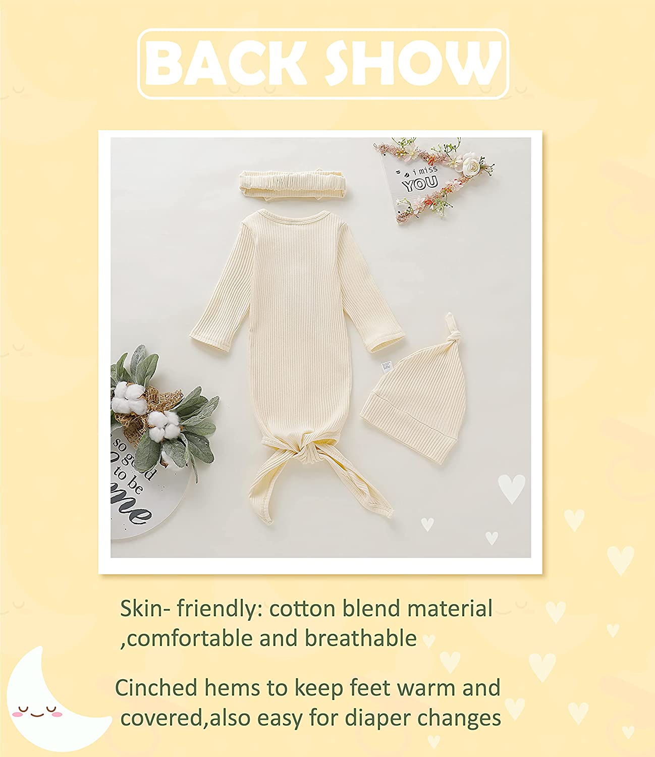 Baby Gown Newborn, Knotted Infant Sleeper for Baby Girl and Boy Material:Cotton Suitable for 0-6M Size:Bust: 44cm/17.32inch,Length: 55cm/21.65inch
