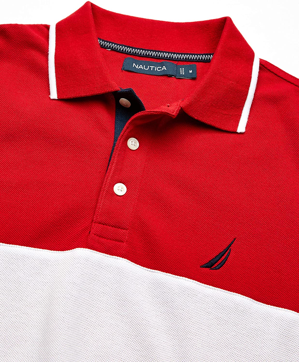 Nautica Men's Short Sleeve 100% Cotton Pique Color Block Polo Shirt