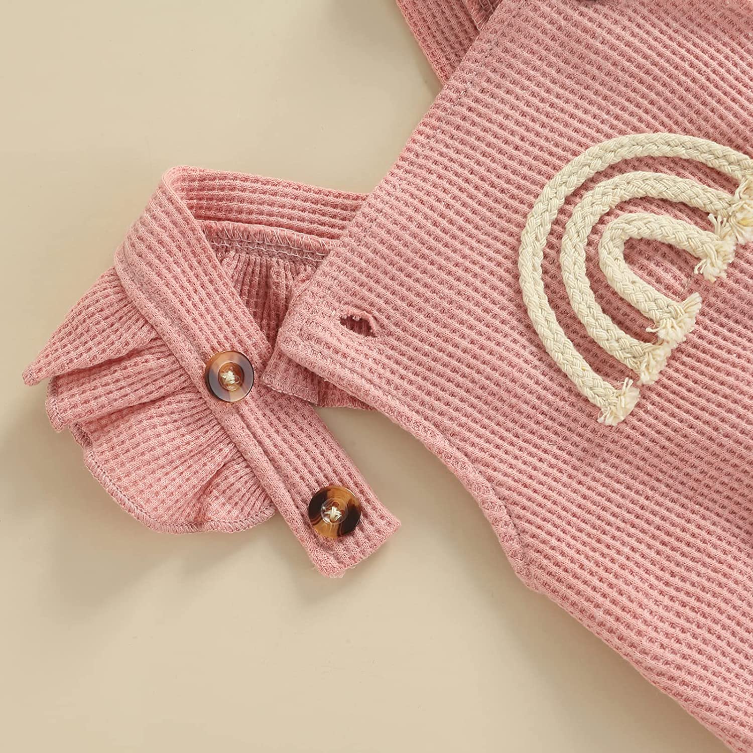 Newborn Baby Boy Girls Clothes Infant Rainbow Romper Waffle Ruffled Sleeveless Backless Bodysuit Jumpsuit Headband Outfit