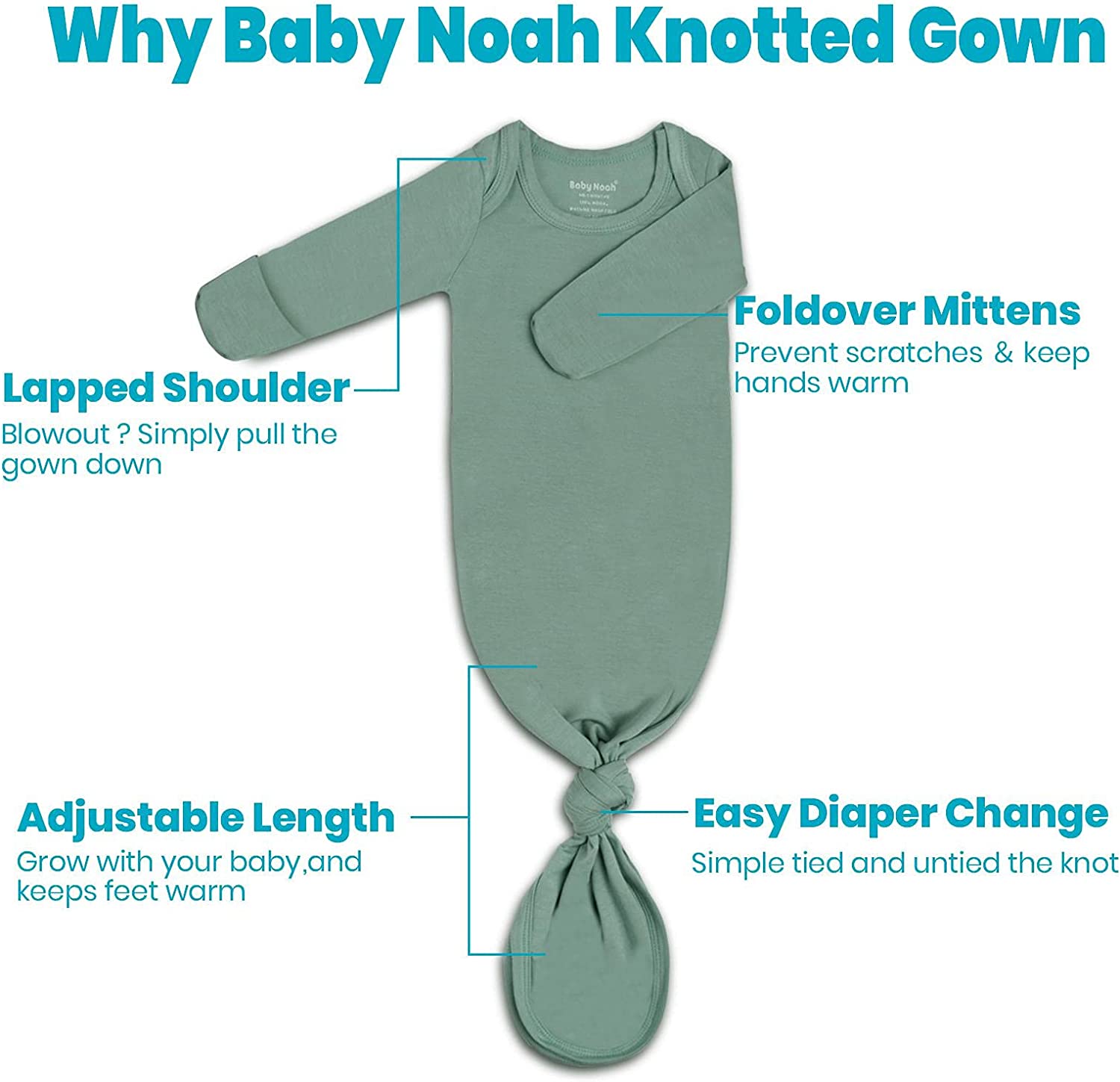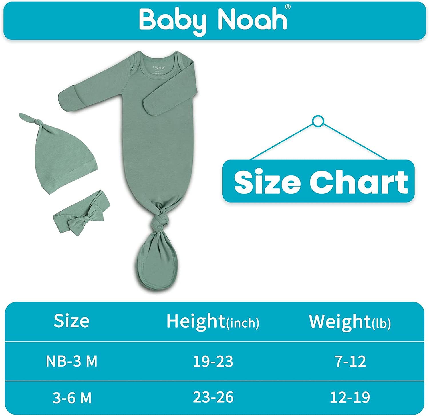 Newborn Baby Knotted Gown, Super Soft Silky Infant Sleeper, Baby Girl Sleep Gown with Mittens, Bow, and Hat Set