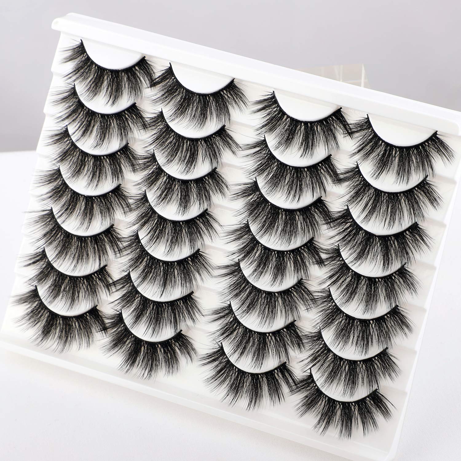 Newcally Lashes False Eyelashes Dramatic 20MM Faux Mink Lashes Pack 14 Pairs Wispy Long Thick Fluffy Strip Eye Lashes Multipack