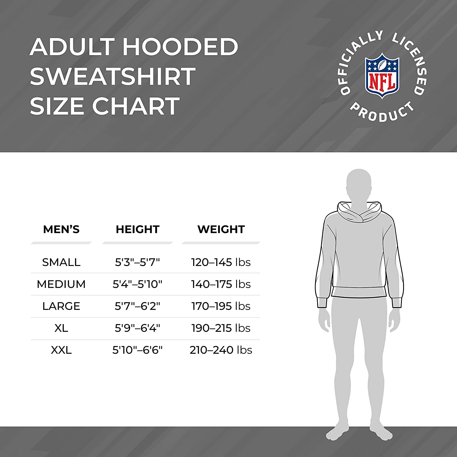 NFL Long Sleeve Charcoal Hooded Sweatshirt, Adult Gameday Apparel, Unisex Hoodies Men and Women