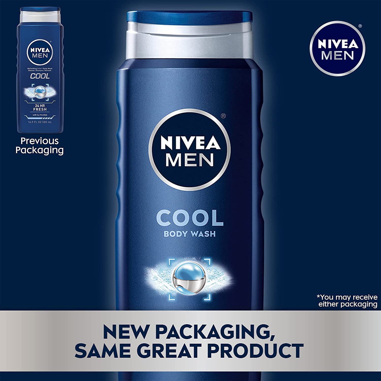 Take care of your skin with NIVEA MEN Cool Body Wash. This body wash gently cleanses and leaves skin feeling comfortable. NIVEA MEN Cool Body Wash is formulated with Menthol for a cool, icy feel. This NIVEA body wash for men can be used for shaving, and as a shampoo and body wash that is specifically crafted for men's skin needs. The refreshing formula does not dry out skin, making it great for everyday use. It is also free of phthalates, parabens and microplastic particles. With a long-lasting masculine scent and icy menthol notes, this body cleanser provides a revitalizing shower experience that leaves skin feeling cared for long after the shower. A refreshing body wash is a key part of a skin care routine and pairs well with NIVEA MEN Maximum Hydration Nourishing Body Lotion. To use, rub scented body wash into a lather while gently massaging over body and rinse.