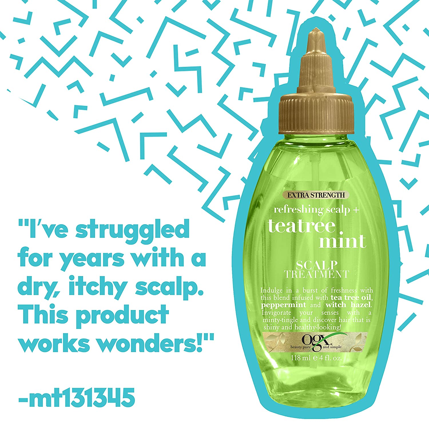 OGX Extra Strength Refreshing + Invigorating Teatree Mint Dry Scalp Treatment with Witch Hazel Astringent to Help Remove Scalp Buildup, Paraben-Free, Sulfate Surfactant-Free, 4 fl oz