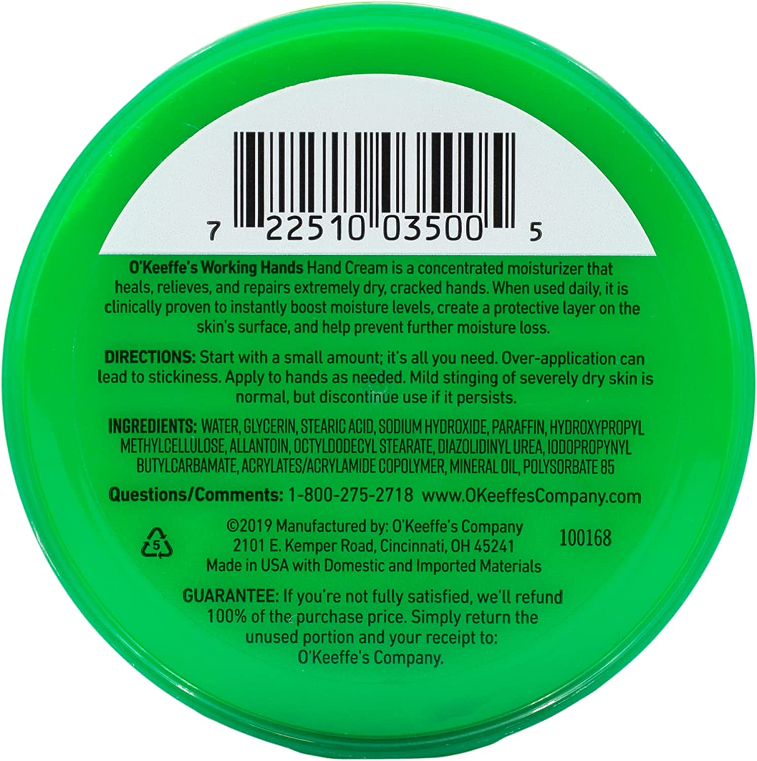 O’Keeffe’s Working Hands Hand Cream is a concentrated, unscented hand cream that heals, relieves and repairs extremely dry, cracked hands. When used daily, O’Keeffe’s Working Hands Hand Cream is clinically proven to instantly boost moisture levels, help prevent further moisture loss, create a protective barrier on the skin’s surface, and make a difference you will feel within days. O’Keeffe’s offers a tube version of our moisturizing hand cream. Our tube formula offers the same results O’Keeffe’s jar users know and expect in the convenience of a tube! Whether you prefer a tube or jar, O’Keeffe’s Working Hands Hand Cream comes in both forms to provide relief. 100% Money Back - If you are not fully satisfied with the performance of O’Keeffe’s products, we will refund 100% of the purchase price. Simply return the unused portion of the product and your receipt to 2105 E. Kemper Road, Cincinnati, OH 45227 for a prompt refund. Click on the O'Keeffe's link at the top of this page to shop the O'Keeffe's Brand Store.