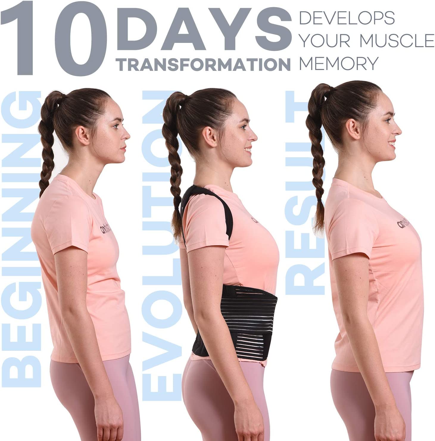 Omples Posture Corrector for Women and Men Back Brace Straightener Shoulder Upright Support Trainer for Body Correction and Neck Pain Relief, Medium (Waist 34-38 inch), Patent Pending