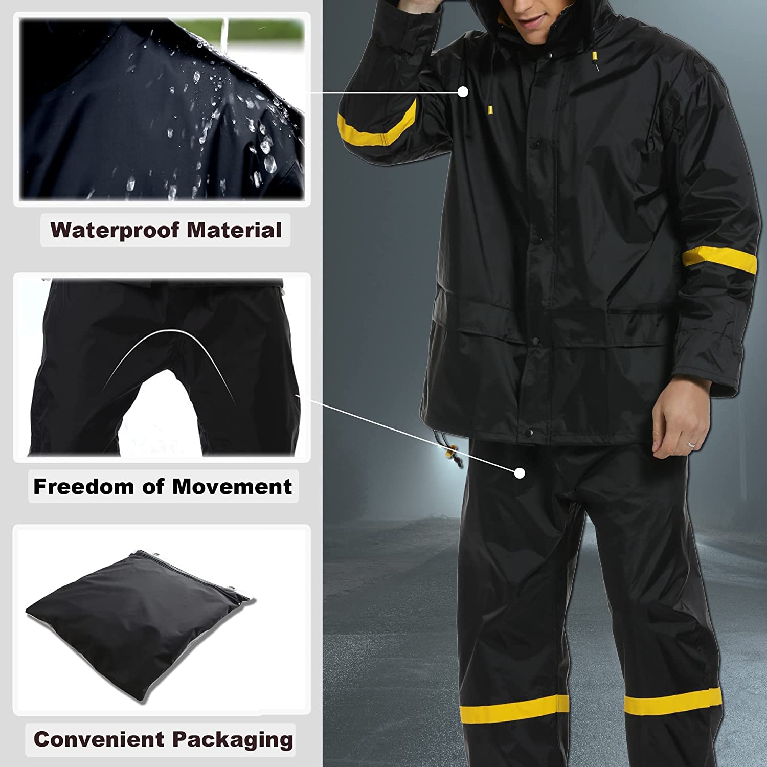 Ourcan Rain Suits for Men Classic Rain Gear Waterproof Rain Coats Hooded Man's Rainwear Fishing Rain Jacket and Rain Pants