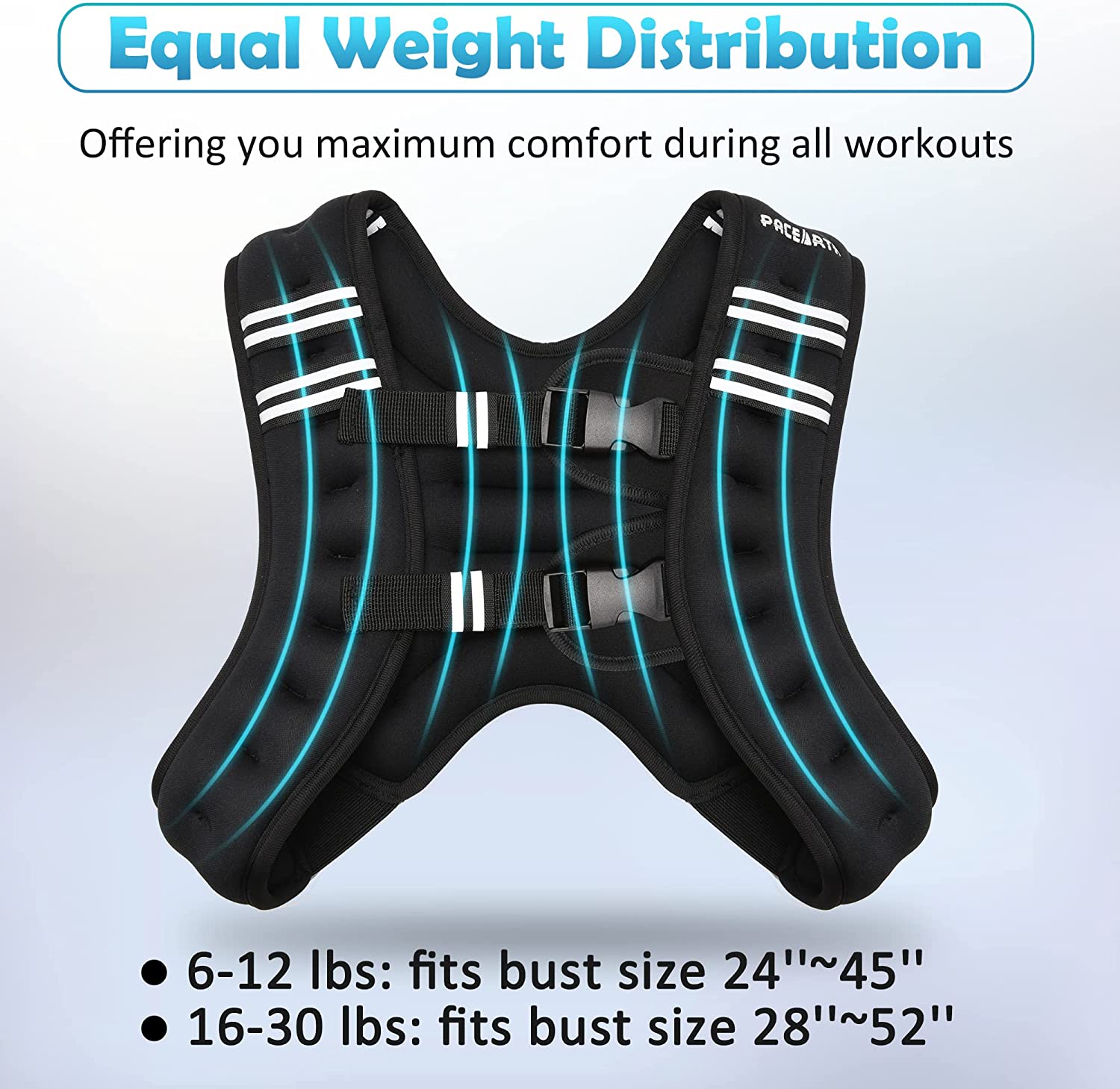 PACEARTH Weighted Vest with Ankle/Wrist Weights 6lbs-30lbs Body Weight Vest with Reflective Stripe, Size-Adjustable Workout Equipment for Strength Training, Walking, Jogging, Running for Men Women