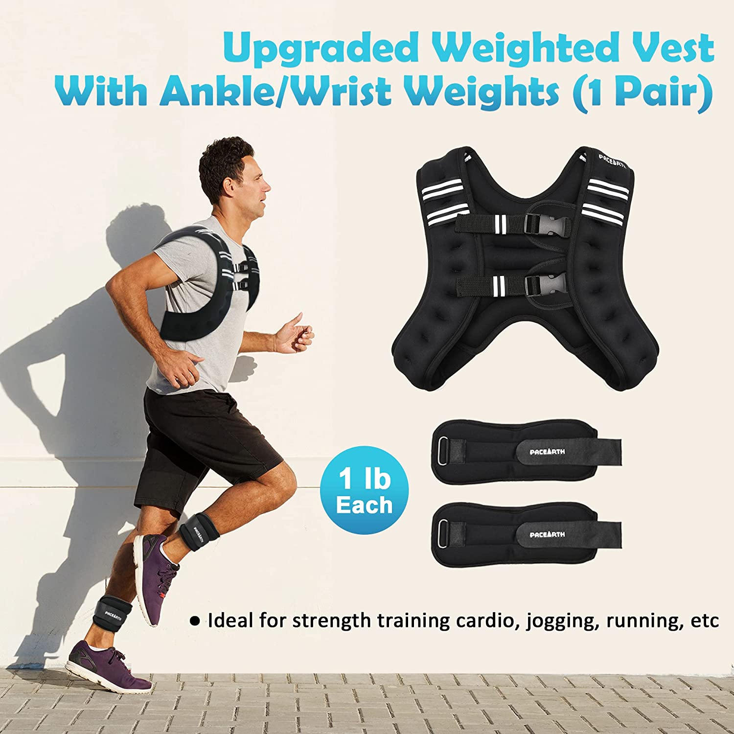PACEARTH Weighted Vest with Ankle/Wrist Weights 6lbs-30lbs Body Weight Vest with Reflective Stripe, Size-Adjustable Workout Equipment for Strength Training, Walking, Jogging, Running for Men Women