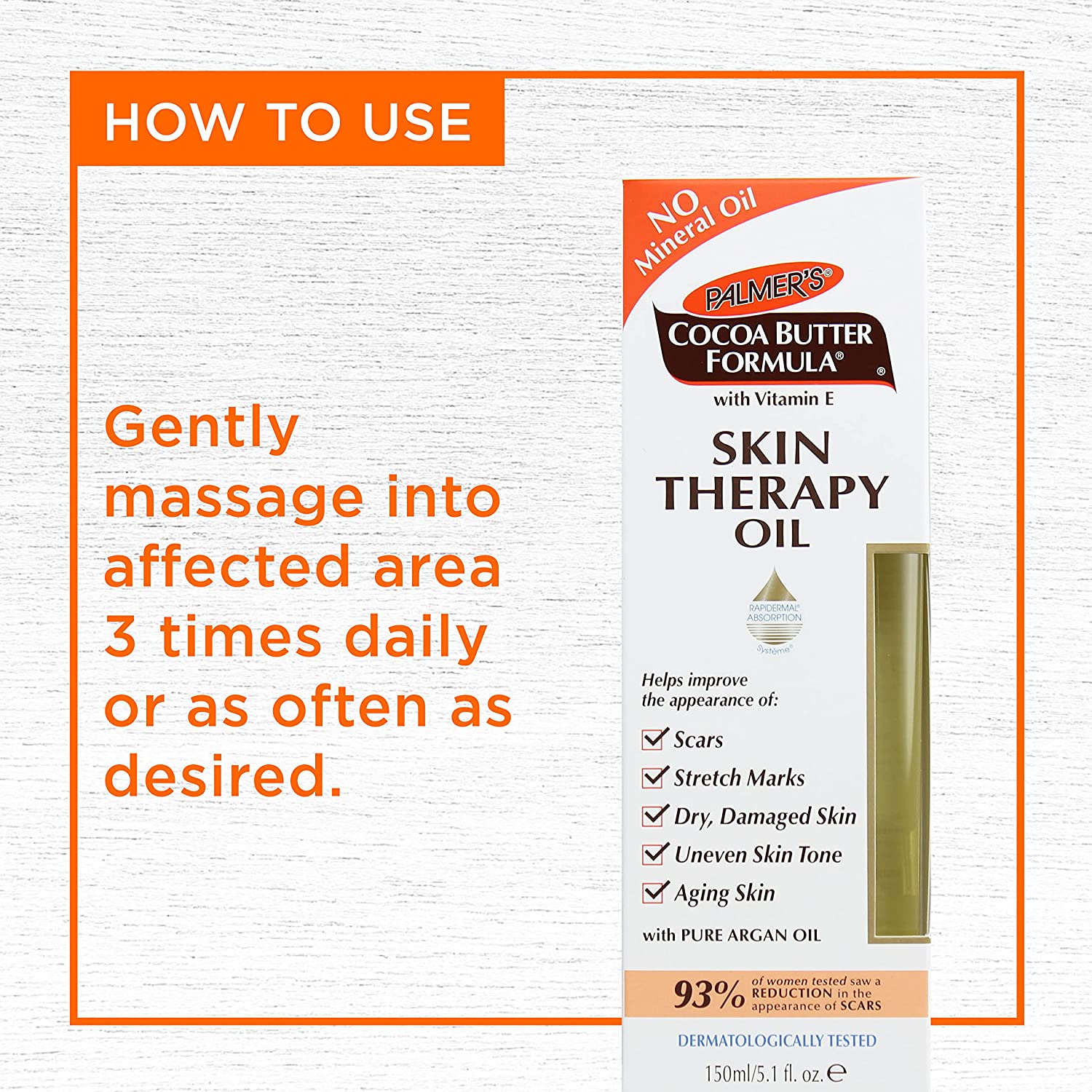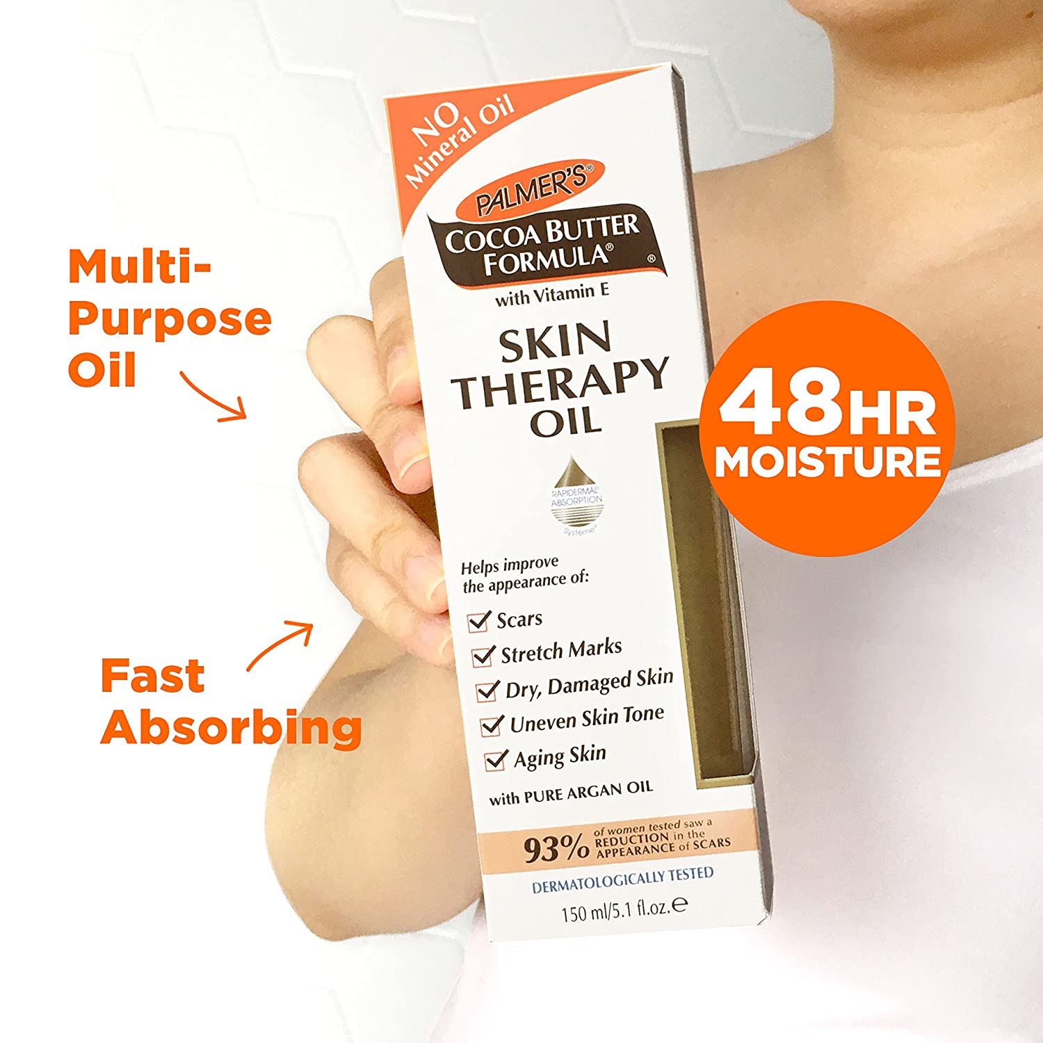 You’ve heard of using creams and lotions to help your skin stay hydrated or heal dry, damaged skin, but have you considered moisturizing body oils? Some of the best body oils for glowing skin have naturally-derived ingredients, including cocoa butter, coconut oil and argan oil. The Palmer's Skin Therapy Oil collection harnesses all of the cocoa butter benefits and blends it with other skin-loving ingredients to hydrate and pamper your skin. Cocoa butter is a natural emollient that works well for moisturizing skin and aiding with scar lightening, while Vitamin E is rich in antioxidants and helps to heal damaged skin. When blended together they help to minimize scars and keep skin hydrated and healthy-looking. Not only is Skin Therapy Oil one of the best oils for dry skin on the body, it also helps improve the appearance of imperfections. A staple in many women’s skin care routines, this advanced multi-purpose dry oil is rich in essential fatty acids, vitamins and antioxidants to perfect skin all-over-the body by improving the appearance of stretch marks, scars and dry, damaged or uneven skin. Try the Palmer's Skin Therapy Body Oil in the original or rosehip fragrance for hydrated, glowing and perfected skin.