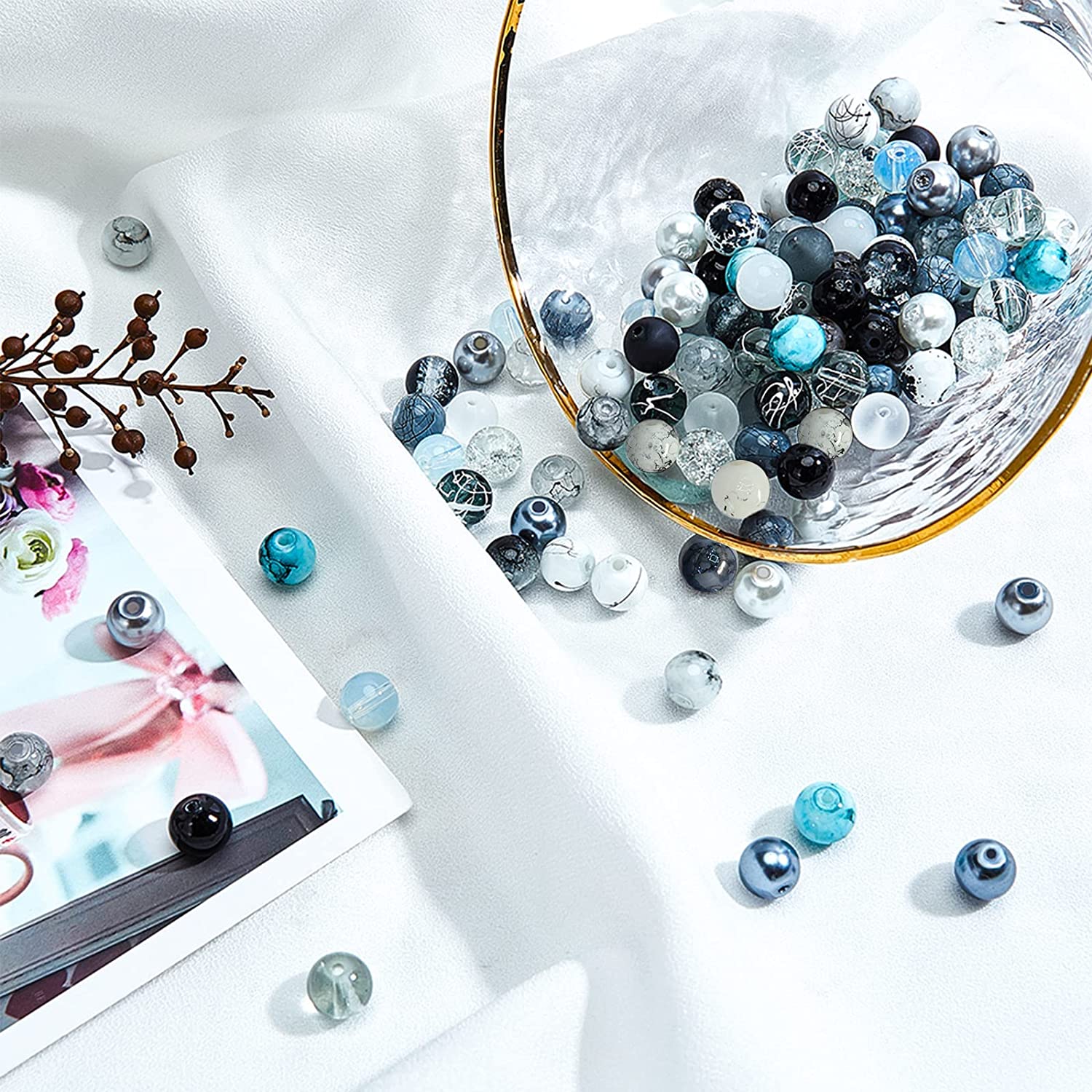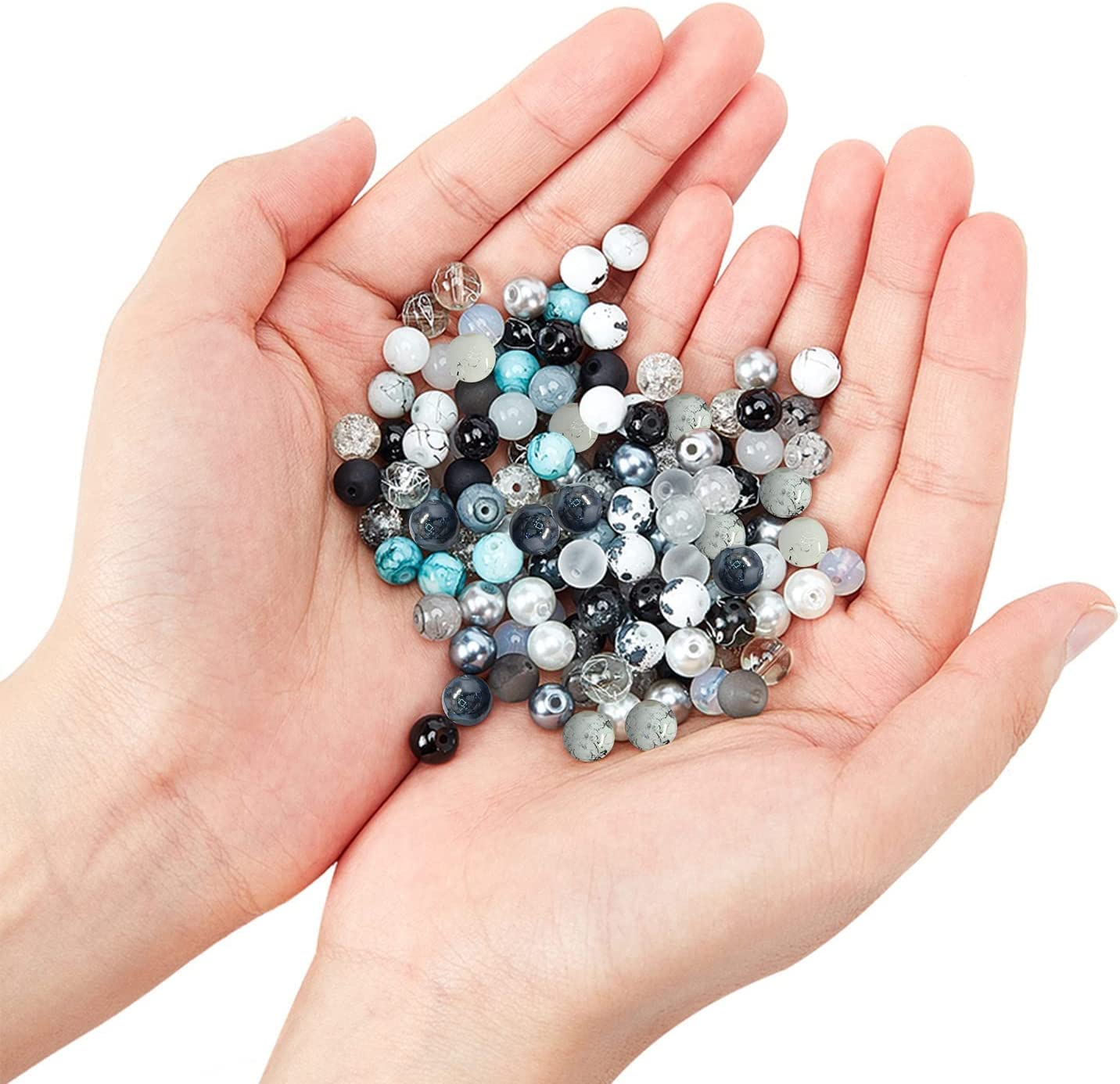 PH PandaHall 24 Color 8mm Round Glass Beads, 720pcs Black White Bracelet Beads Bulk Marble Loose Beads Spacers for Bracelet Earring Necklace Jewelry Making Halloween Eid Mubarak Ramadan Decoration