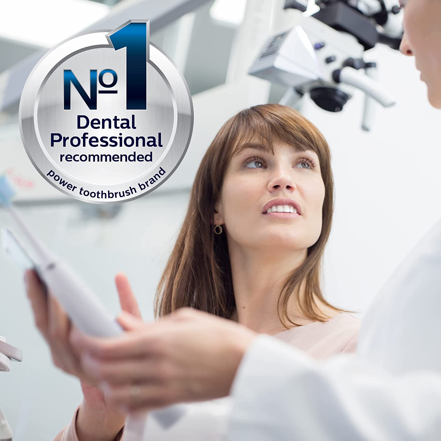 Improve your gum health up to 100% better than a manual toothbrush with the Protective Clean 5300 rechargeable electric toothbrush. It has a pressure sensor that protects teeth and gums from excess brushing pressure. Customize your own brushing experience with your choice of 3 modes: Clean, White and Gum Care. Our BrushSync technology tracks how long you have been using your Optimal Gum Care brush head and how hard you have been brushing. Your electric toothbrush will beep to inform you when to replace your brush head. The easy-start feature slowly increases the power of the brush as you get used to the Sonicare experience and the SmarTimer encourages a full 2 minute brushing time as recommended by your dental professional. The battery indicator light lets you know when it is time recharge; 2 week battery life. The kit includes 1 Protective Clean 5300 handle, 1 Optimal Gum Care brush head, 1 charger, 1 travel case, and 2 extra Diamond Clean brush heads.