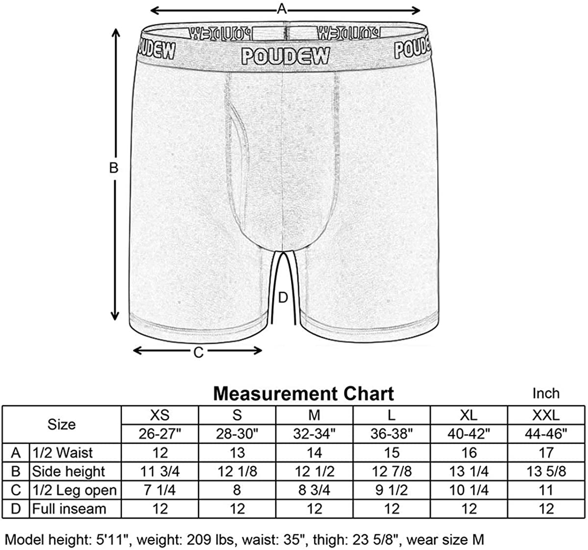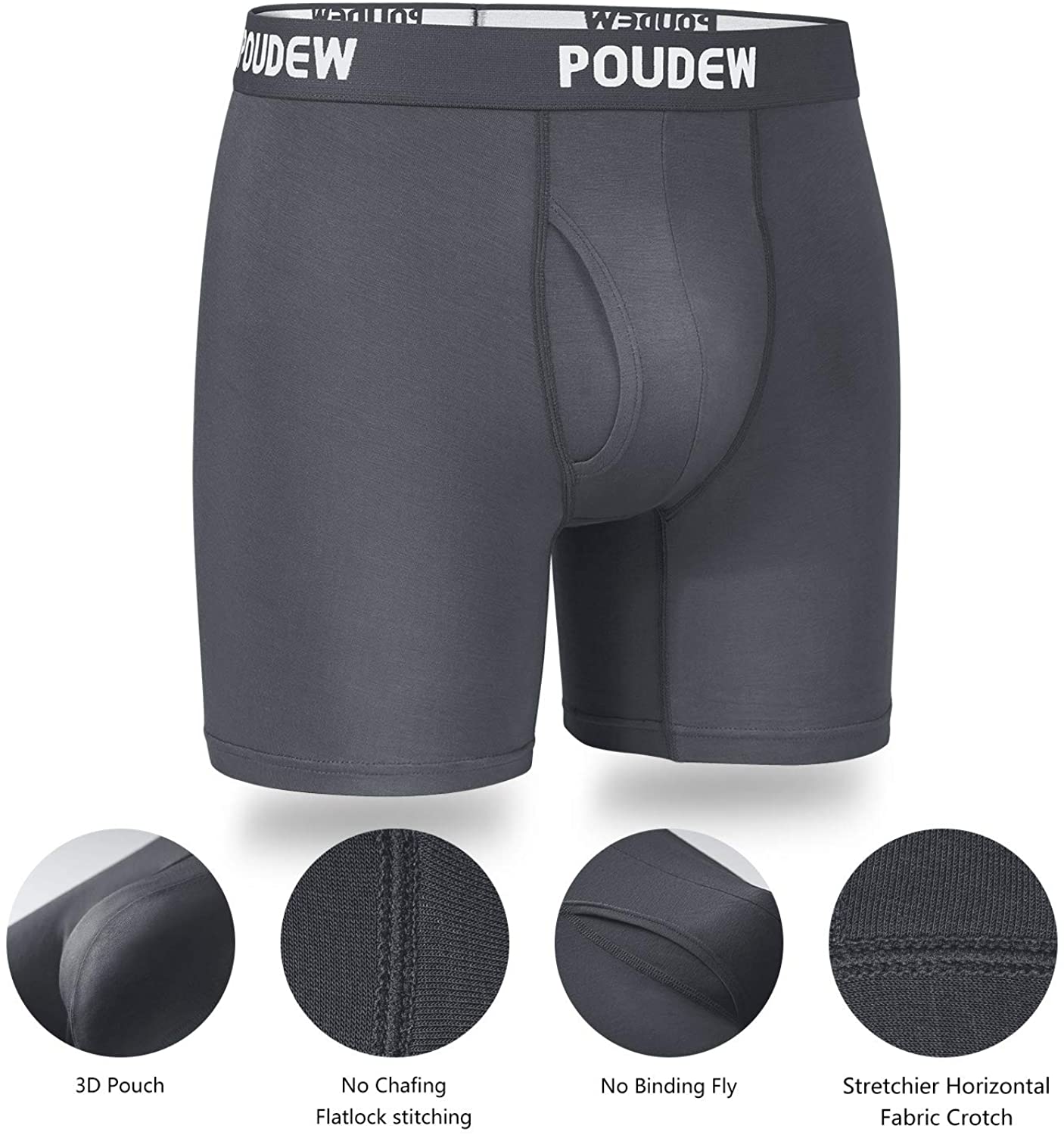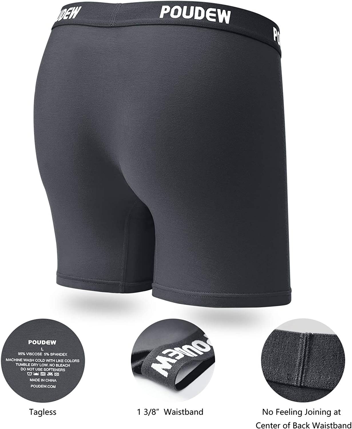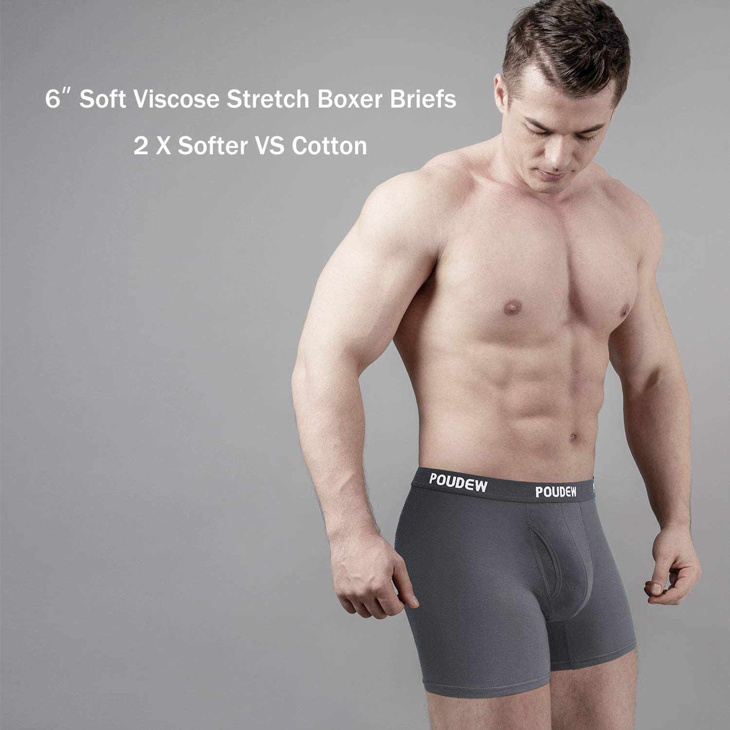 POUDEW Men's Underwear 6 Inches Soft Viscose Boxer Briefs, Tagless Mens Boxer Briefs with Pouch, 5 Pack