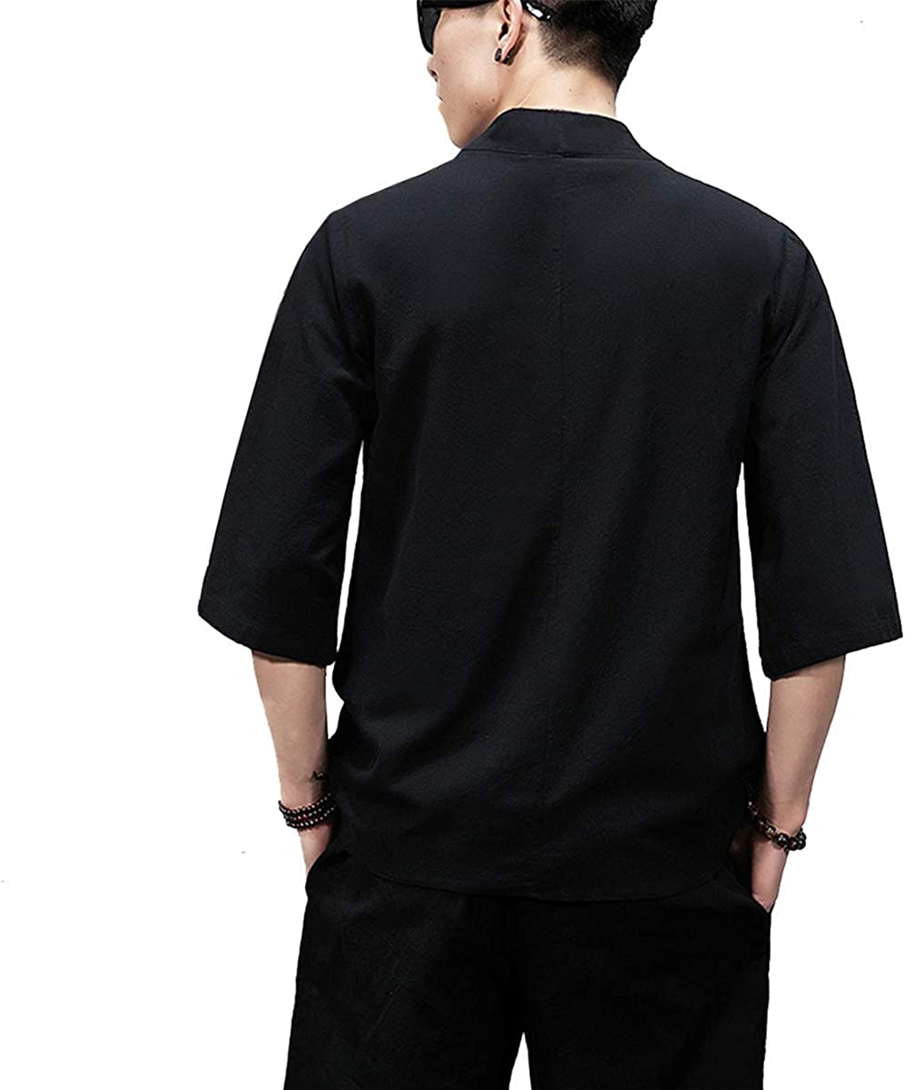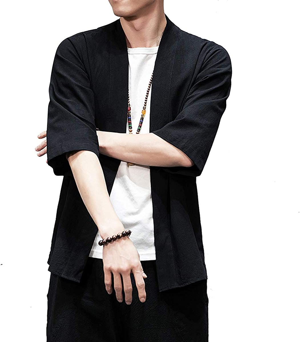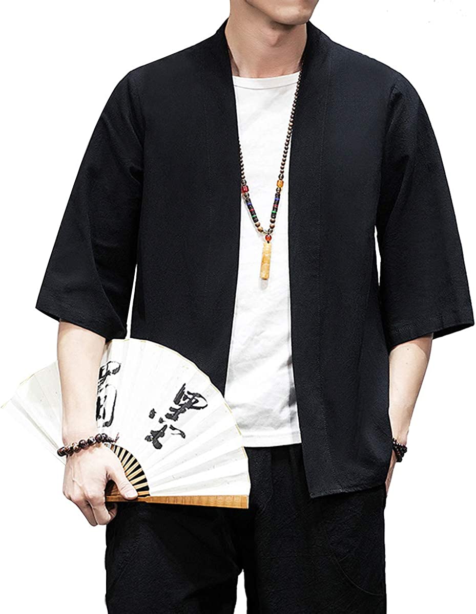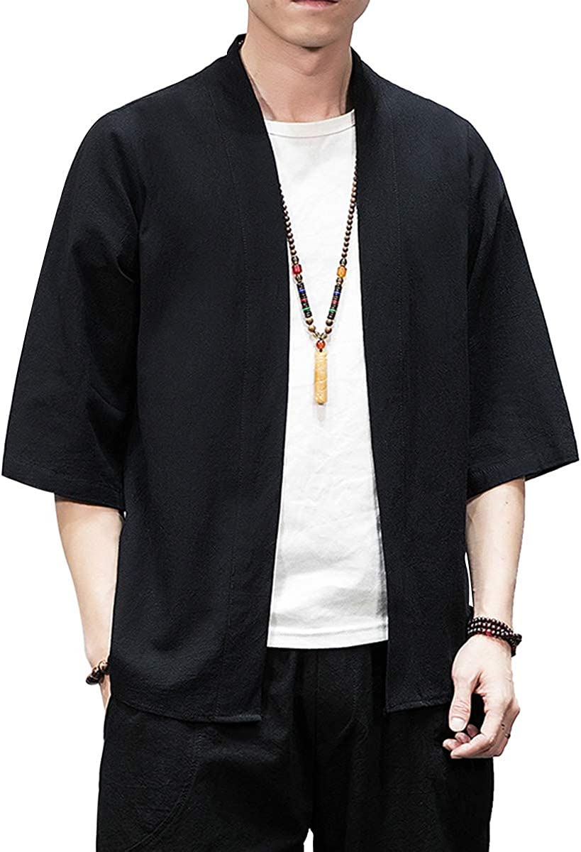 PRIJOUHE Men's Kimono Jackets Cardigan Lightweight Casual Cotton Blends Linen Seven Sleeves Open Front Coat Outwear