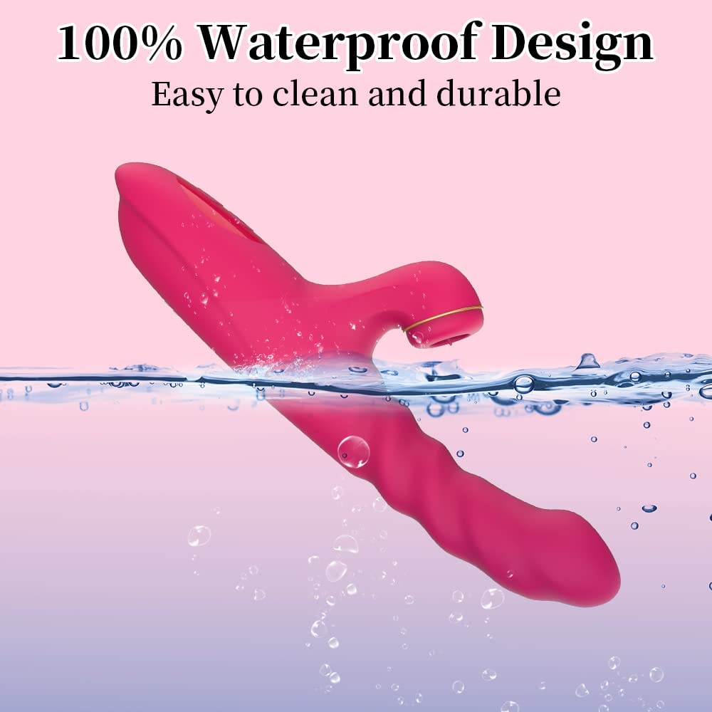 Realistic Dildo, Clitoral Licking G Spot Thrusting Rabbit Vibrator with Heating, Clitoris Nipples Anal Vaginal Rose Stimulator for Quick Orgasm, Adult Waterproof Rechargeable Female Sensory Sex Toys
