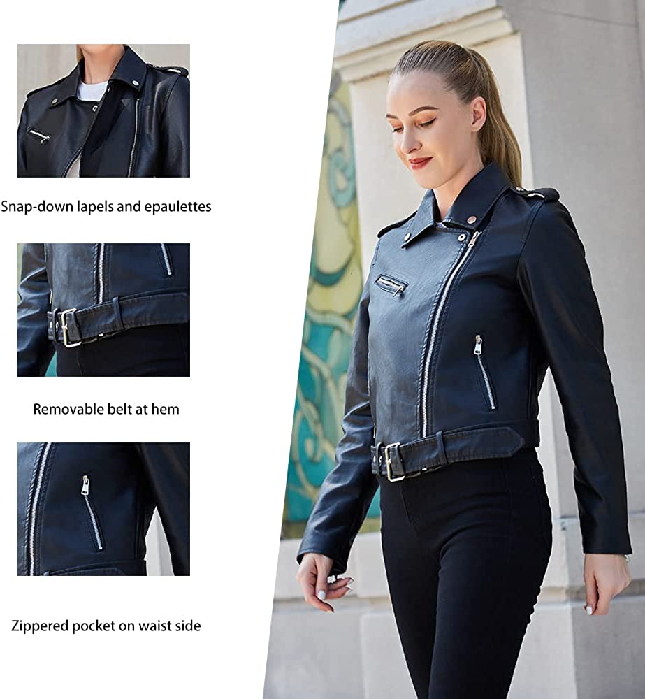 RIJING Women's Faux Leather Jacket Zip Up PU Moto Biker Jacket Casual Slim Short Coat Lightweight Pleather Outwear