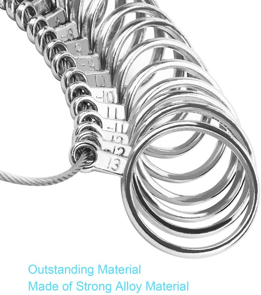 Our finger ring sizer measuring tool has 27 Sizes, US ring size 0-13 with half size ( "-" Means 1/2 size,"-10" is 10.5, "-11" is 11.5 etc).