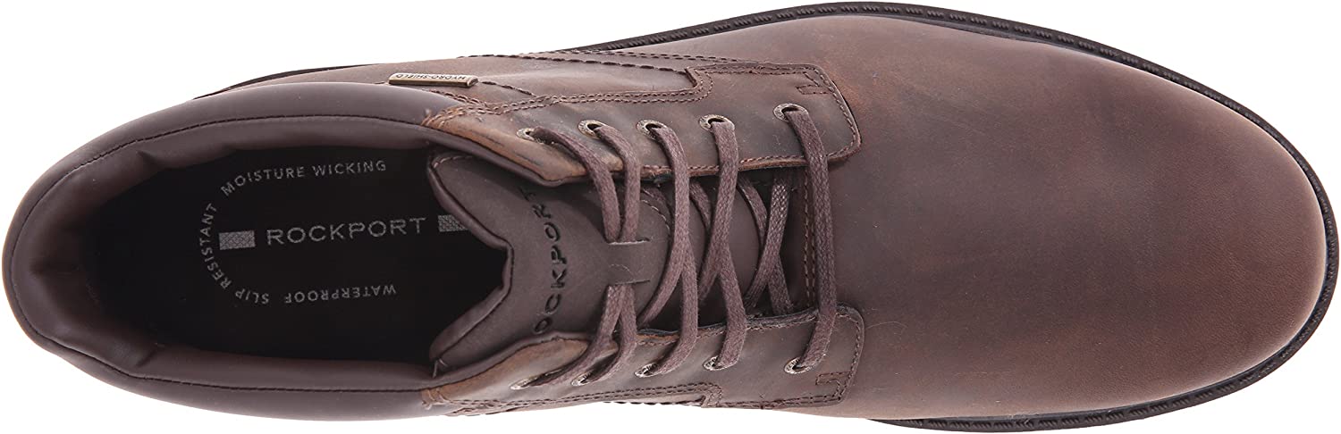Create a subdued rugged look that can be extremely versatile with the style and practicality of these Rockport boots. Waterproof leather upper with a hand-burnished finish and tonal topstitching. Hydro-Shield construction such as waterproof leather, sealed seams, a waterproof insole and a gusseted tongue provide a dry environment during wet conditions. Traditional lace-up closure allows for a secure and adjustable fit. Padded tongue and collar provide additional cushioning. Quick-drying mesh lining and a polyurethane footbed that is cushioned for all-day support. Features adiPRENE by Adidas sport technology in the heel for shock absorption. Slip-Resistant TPR rubber traction outsole. Imported. Measurements: Heel height: 1 1⁄4 inch weight: 1 lb 4 oz Shaft: 4 3⁄4 inches Platform height: 3⁄4 inch product measurements were taken using size 12, width M (D). Please note that measurements may vary by size. Weight of footwear is based on a single item, not a pair. Rockport has always been one step ahead of the times, believing the perfect shoe has not yet been invented. This positive dissatisfaction compels them to constantly improve upon their footwear. Founded in 1971, they were the first company to use advanced athletic technologies in casual shoes to achieve lightweight comfort, and the first company to engineer walking comfort in dress and casual shoes.